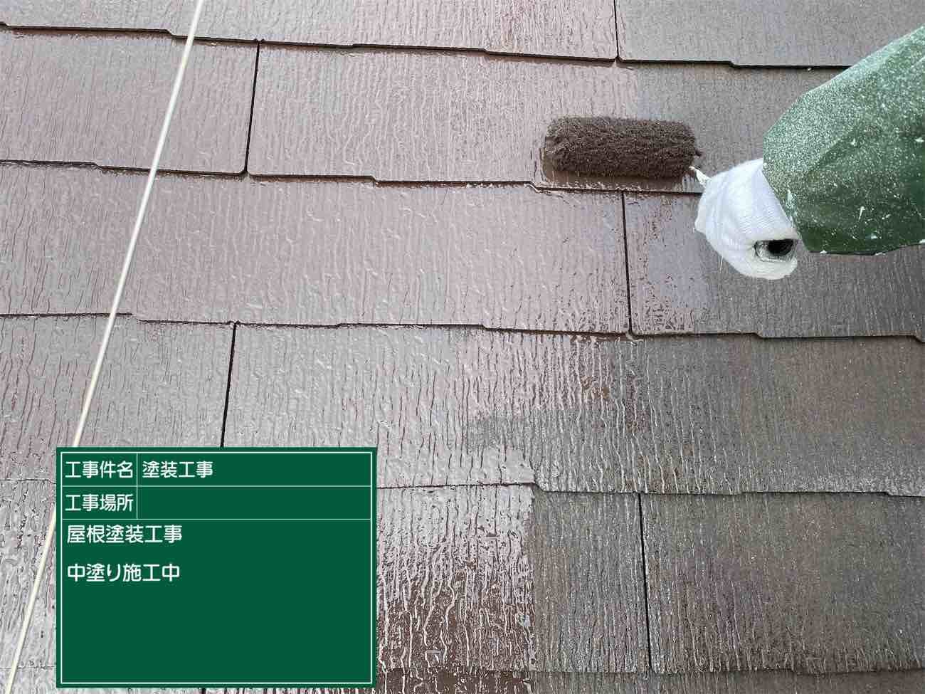 次に中塗りで厚みを出します。屋根は紫外線を最も受けやすい場所になるため基本の3回塗りは欠かせません。