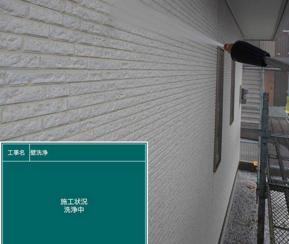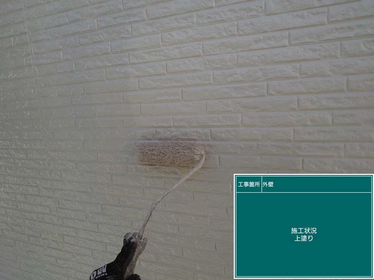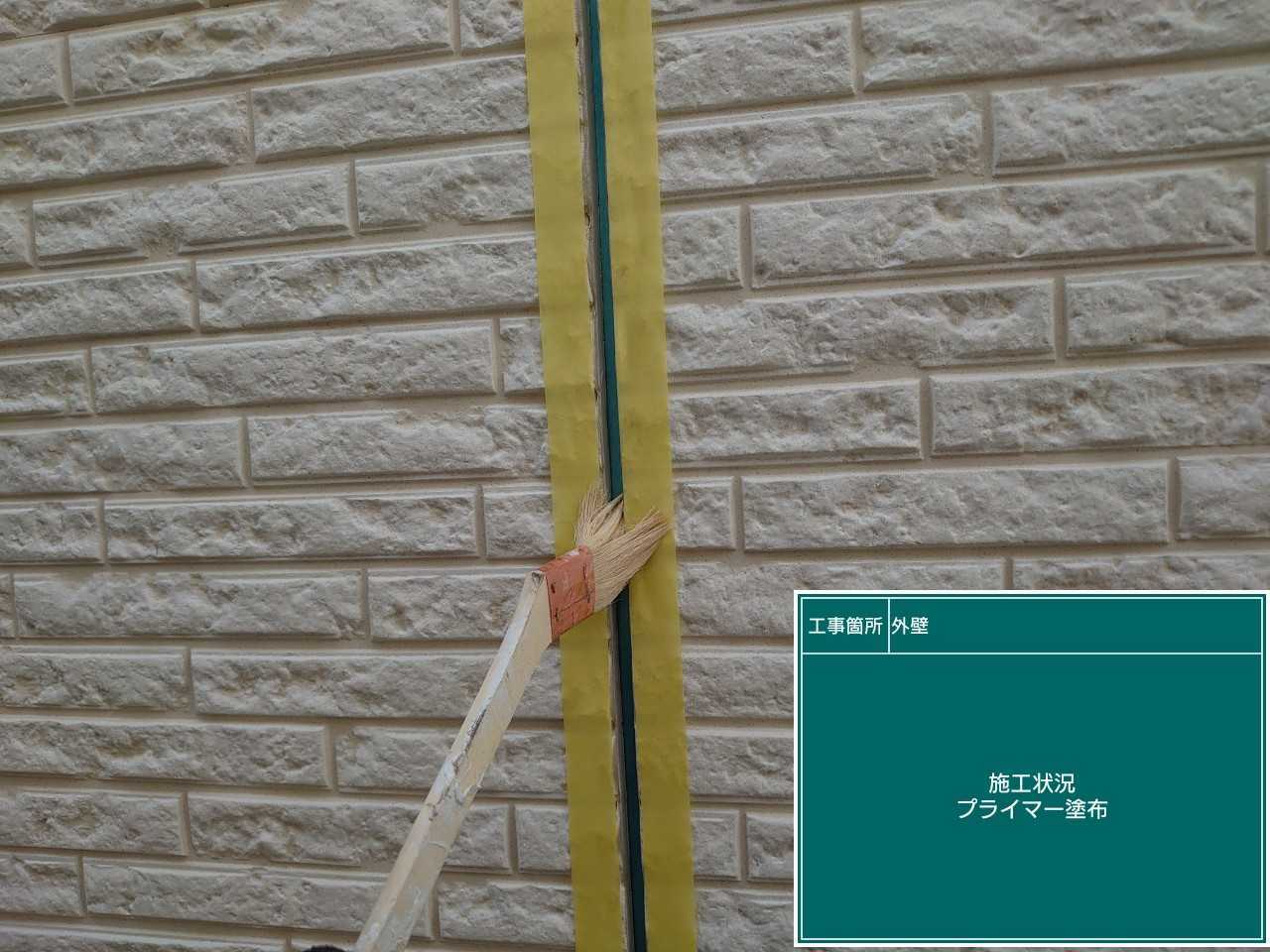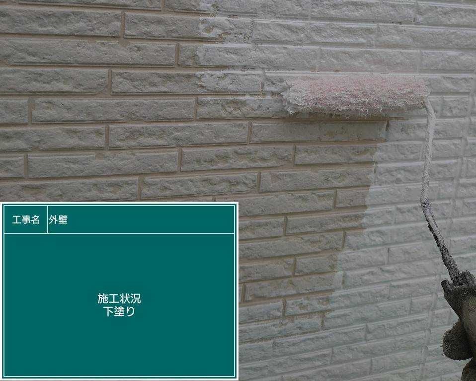 外壁の下塗り作業です。下塗りで塗料の密着性を高めていきます。