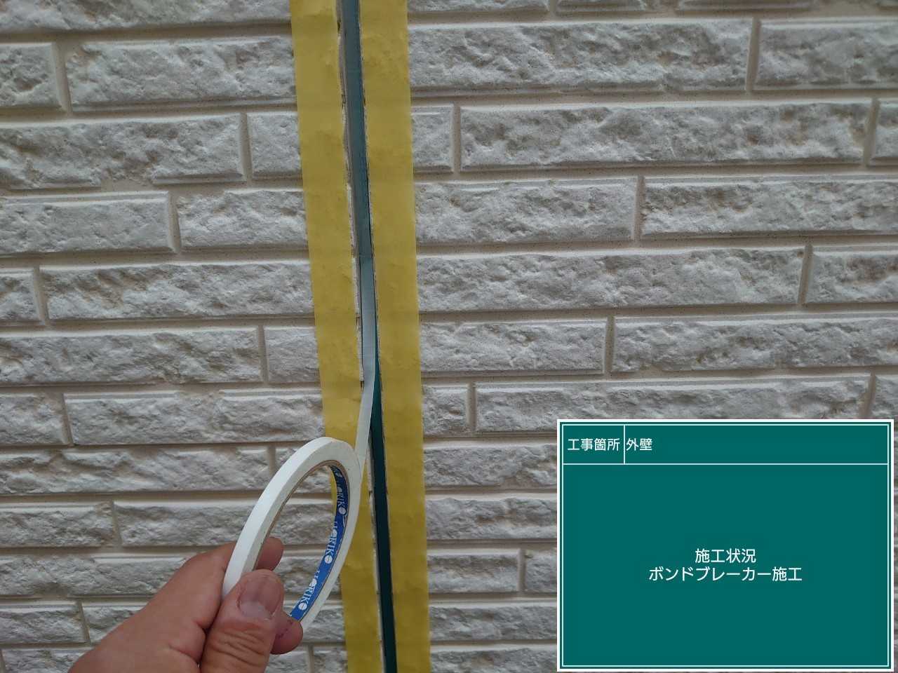 目地の底にはボンドブレーカーを接着し、3面接着しないようにしていきます。