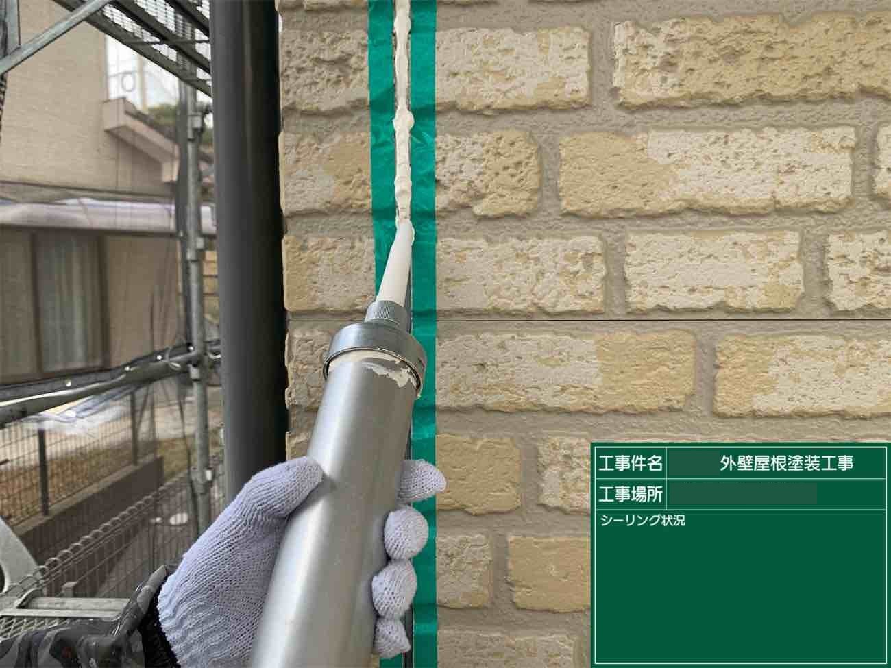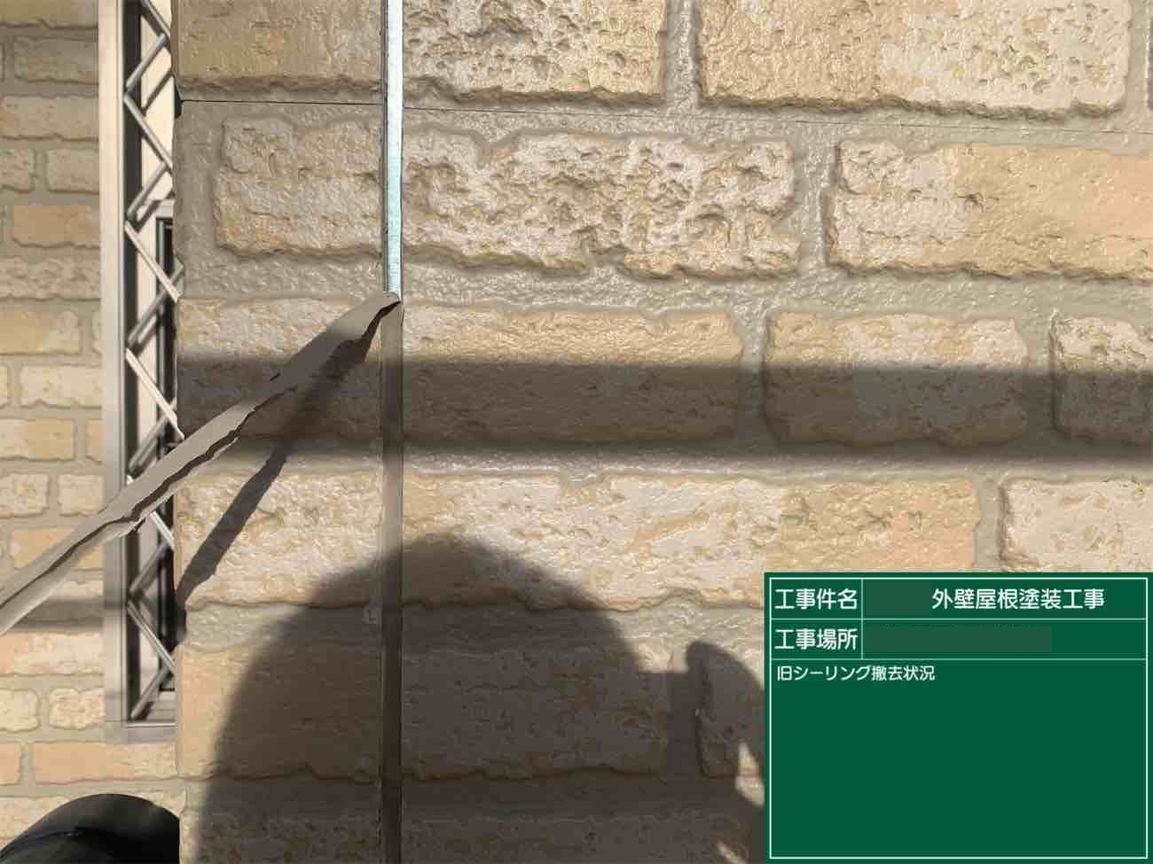 今回はサイディングボードということで、外壁材との間にシーリングがあるので打ち替えという交換の作業を行います。まずは既存のシーリングを撤去していきます。