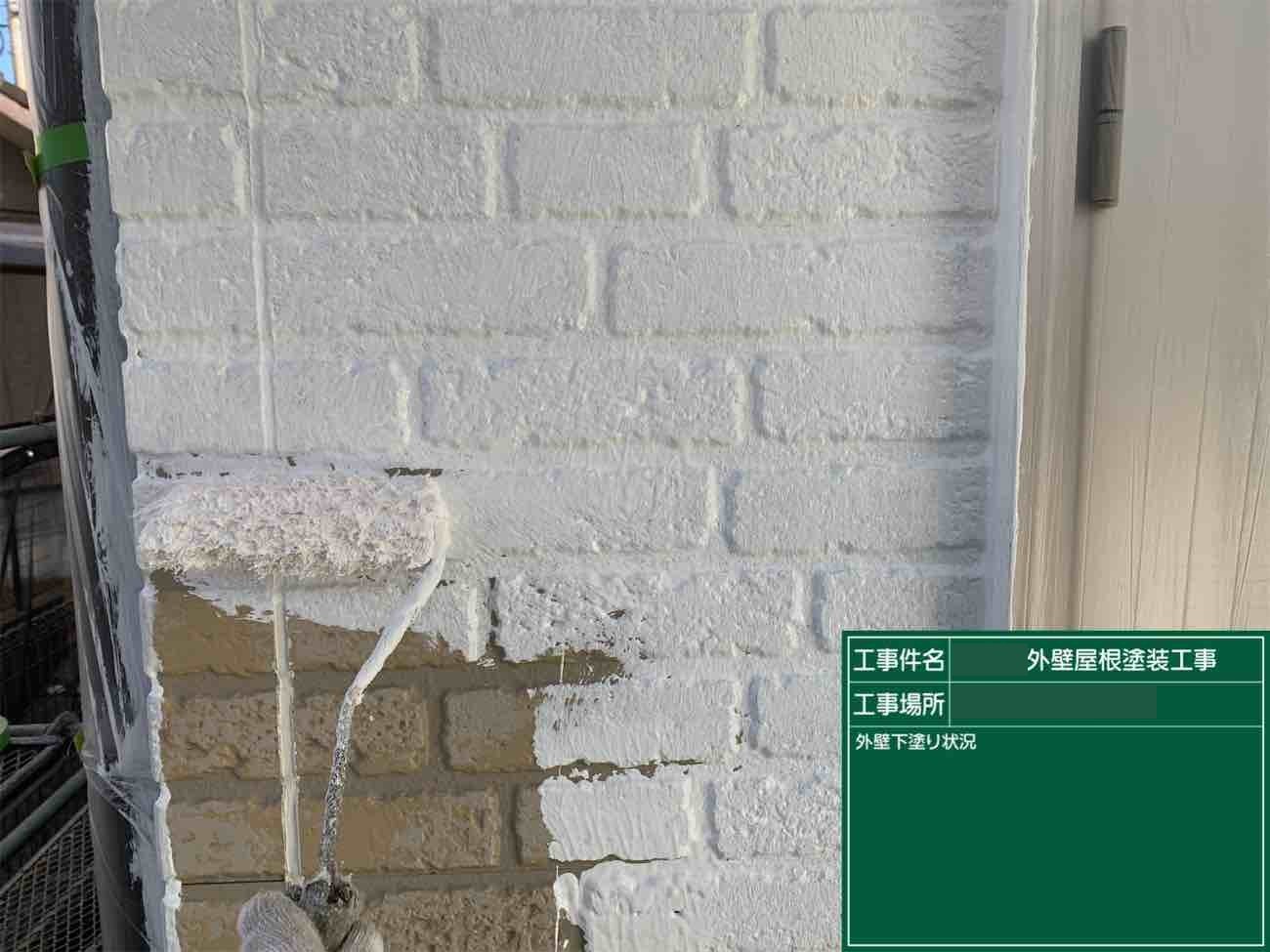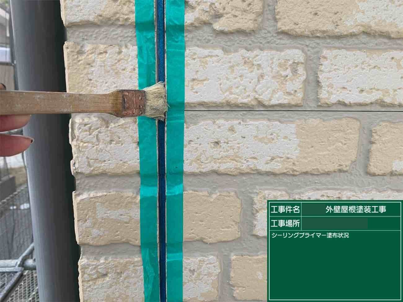 目地の側面にプライマーを塗布していきます。これで接着作用を高めていきます。