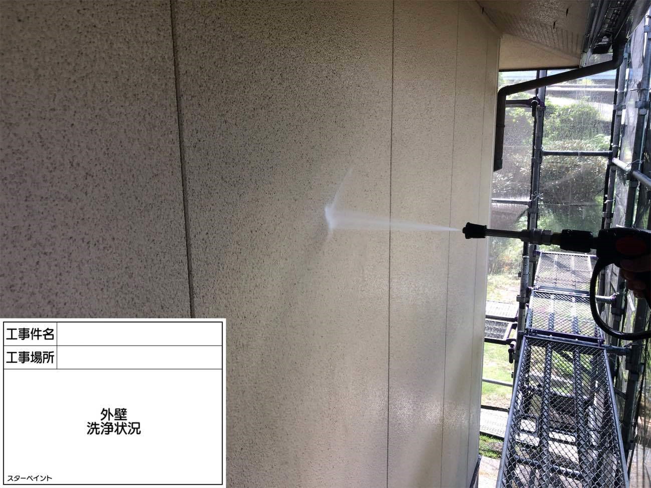 外壁の苔や汚れを洗い流していきます。 上からいい塗料を塗っても汚れが落ちてなかったら、意味がありません。