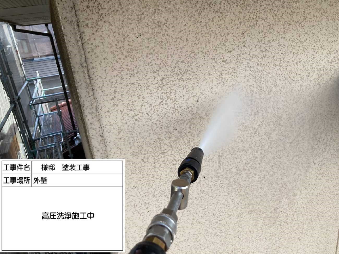 屋根同様、高圧の水でしっかりと外壁を綺麗にします。