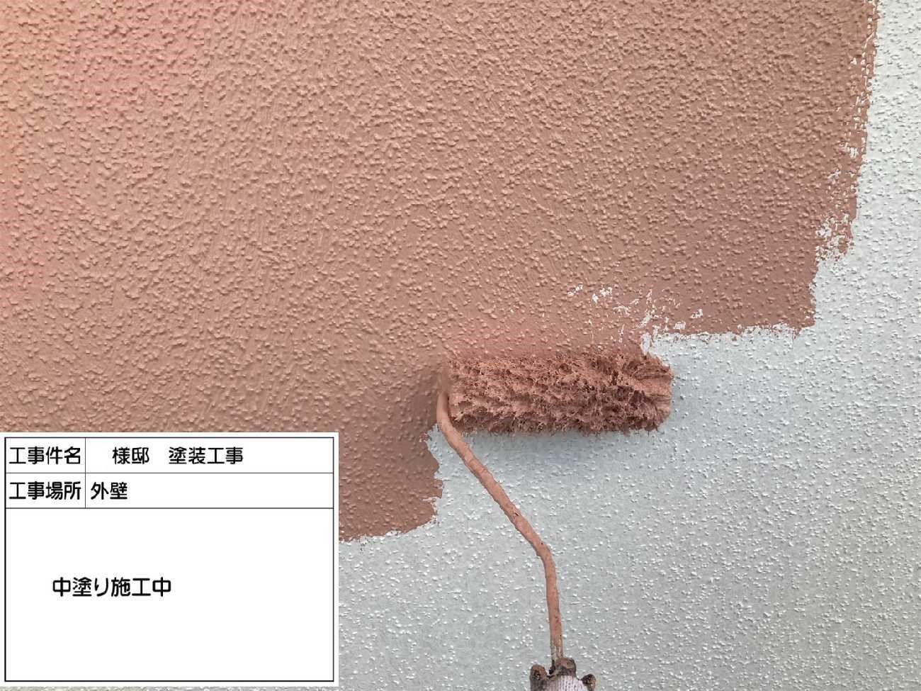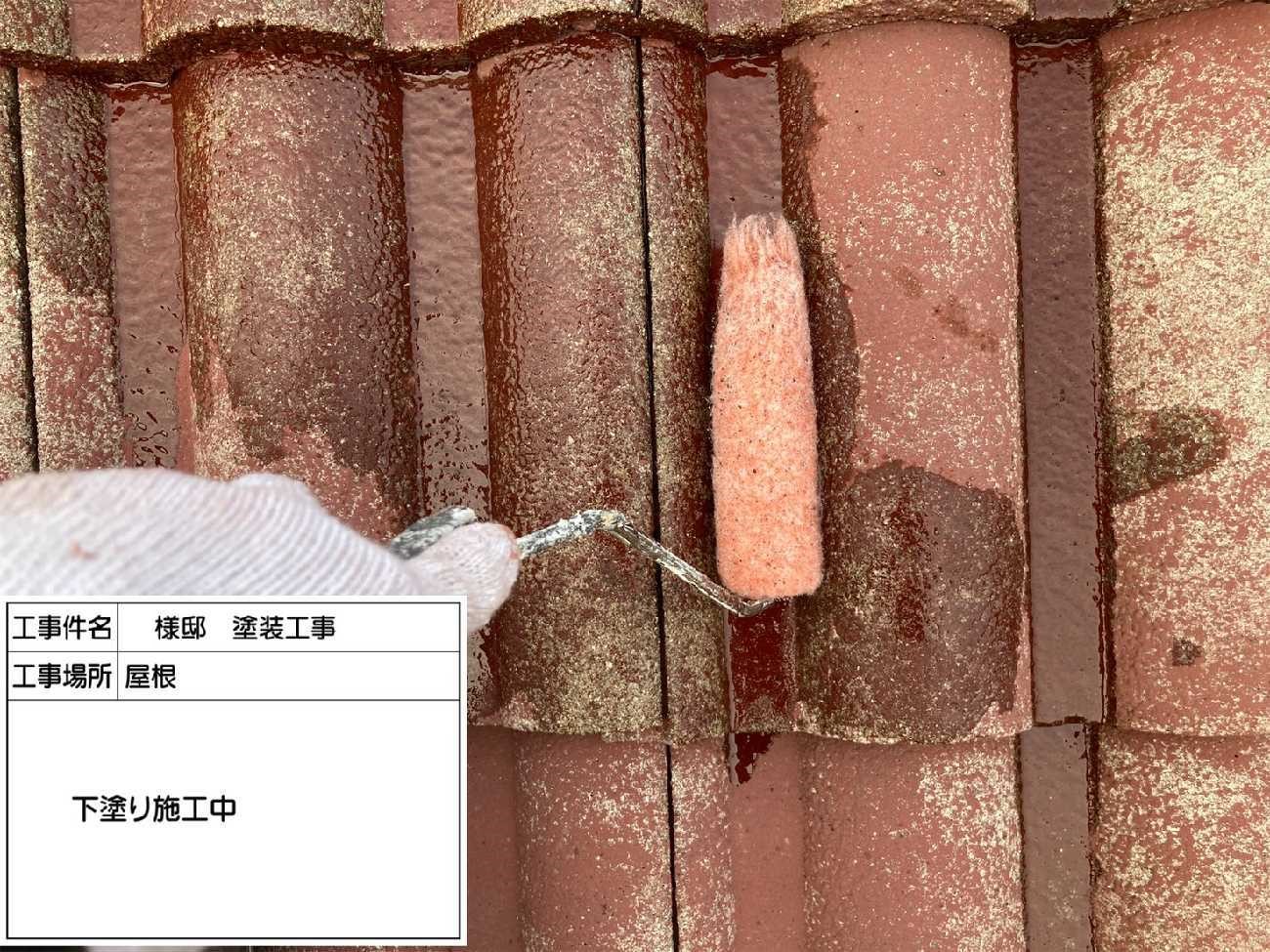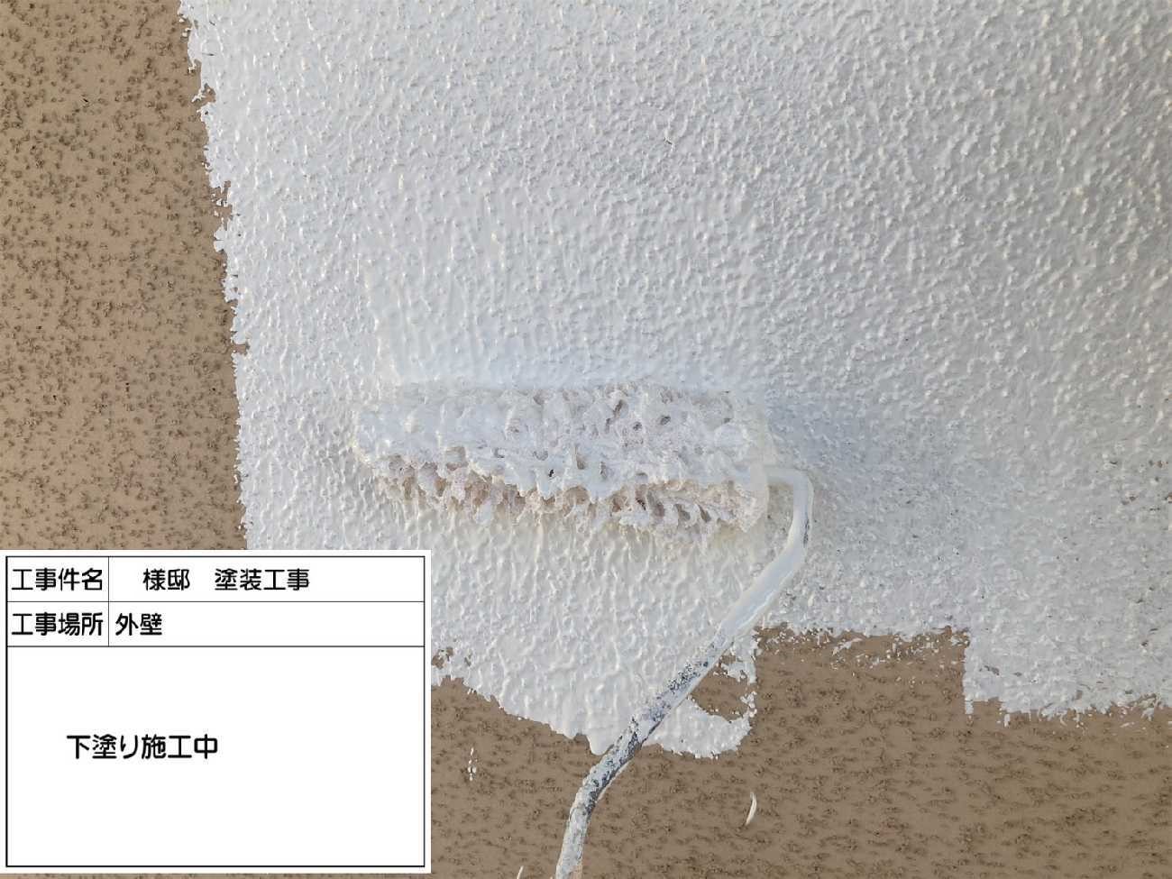 外壁の下塗り作業で中塗り塗料との密着度を高めます。 この工程で手を抜くと塗膜が剥がれる原因となりますので注意が必要です。