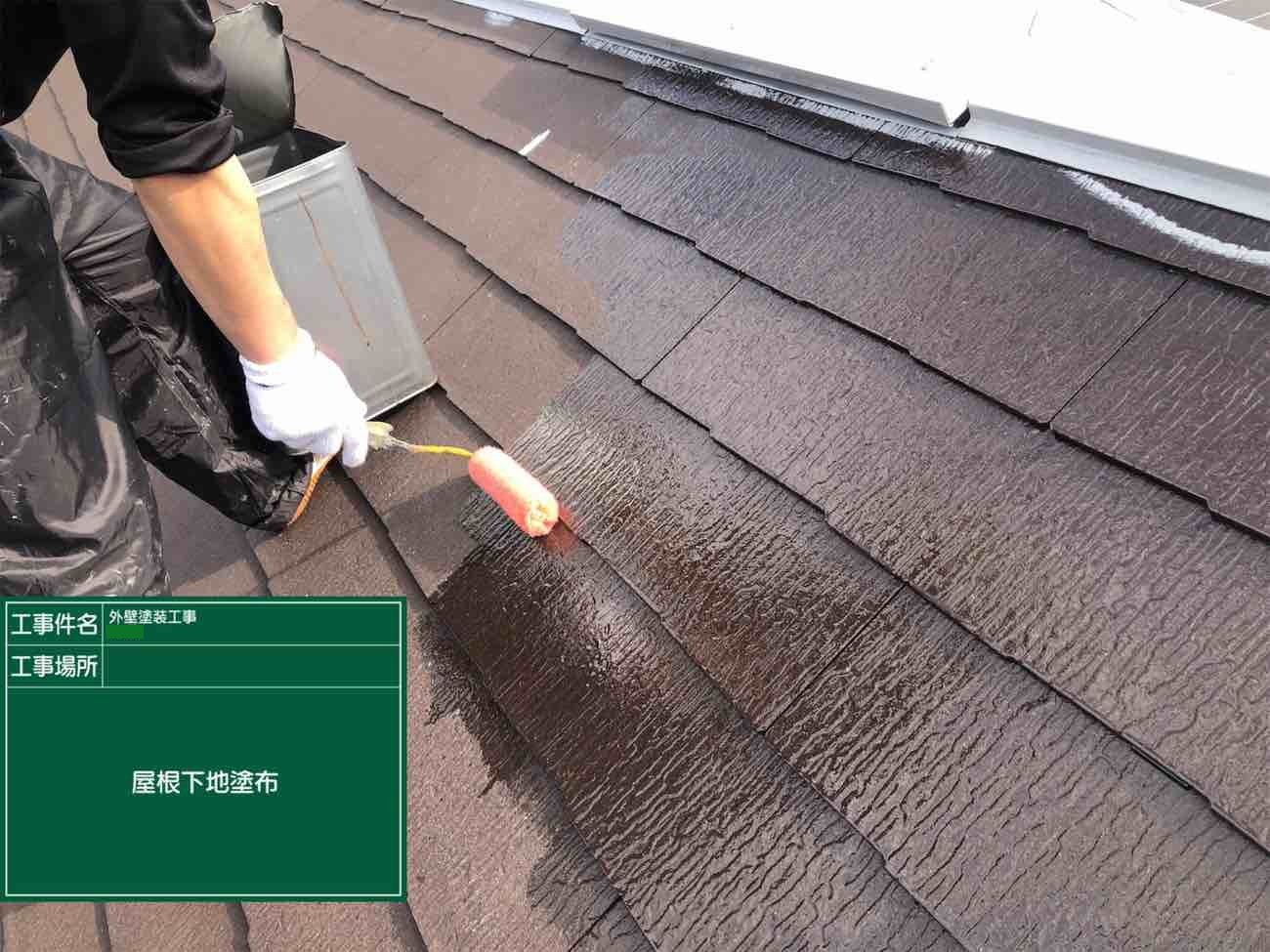 屋根の下塗りです。 屋根は紫外線を直接受けてしまうため劣化のスピードも速いと言われています。