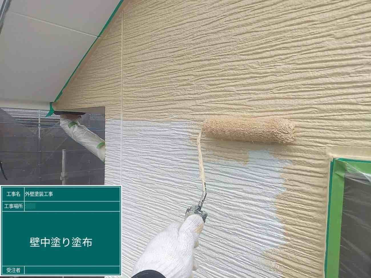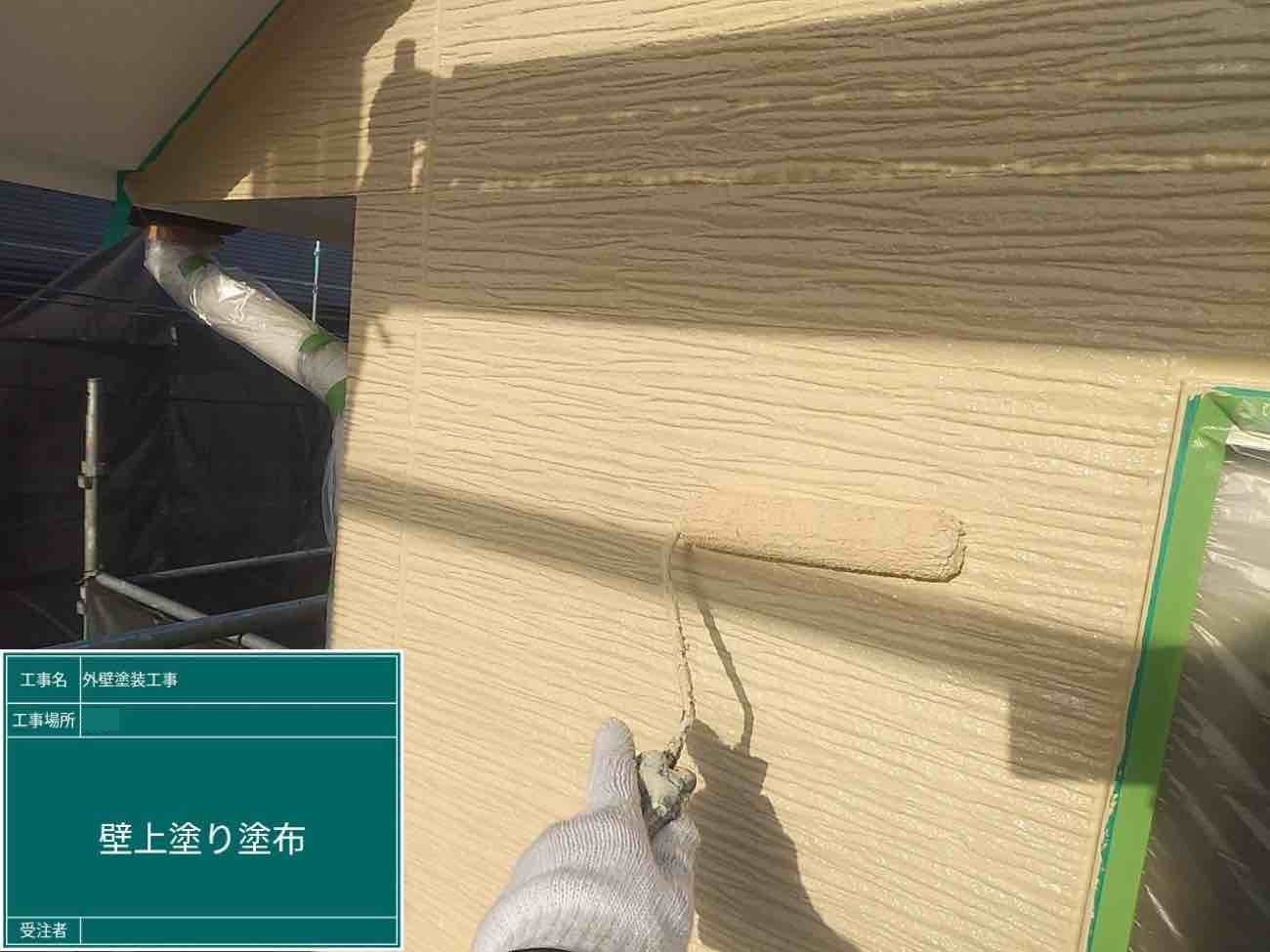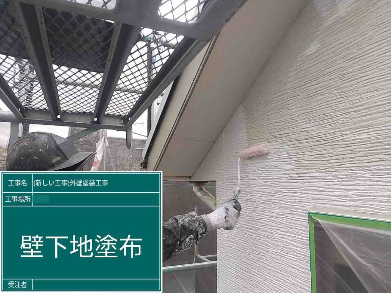 外壁の下塗りです。 この作業は、塗料の密着性を高める外壁塗装の中でも重要な工程になります。