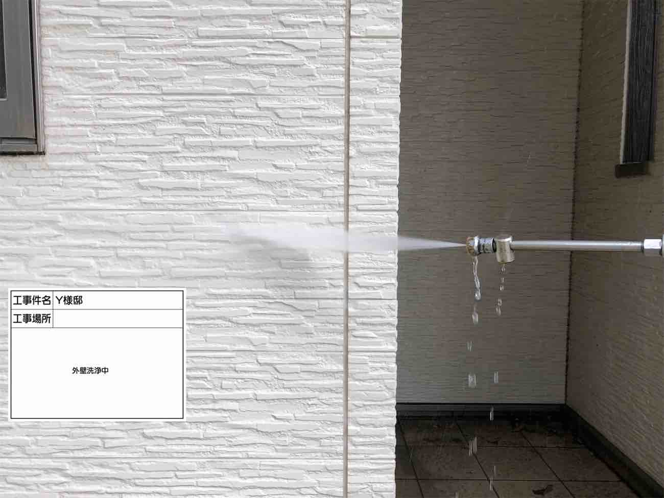 外壁には、カビや苔も付着していますので、丁寧に洗い流します。