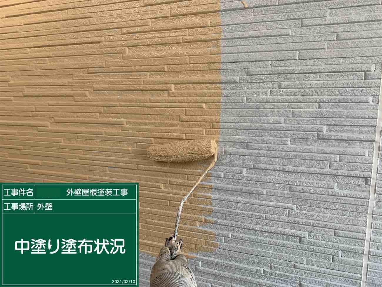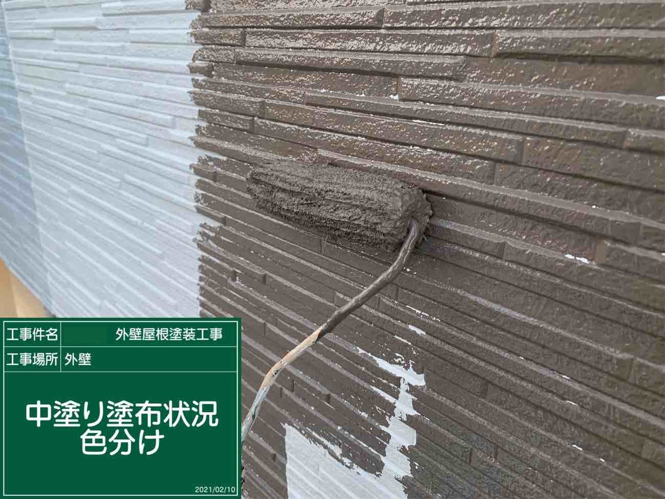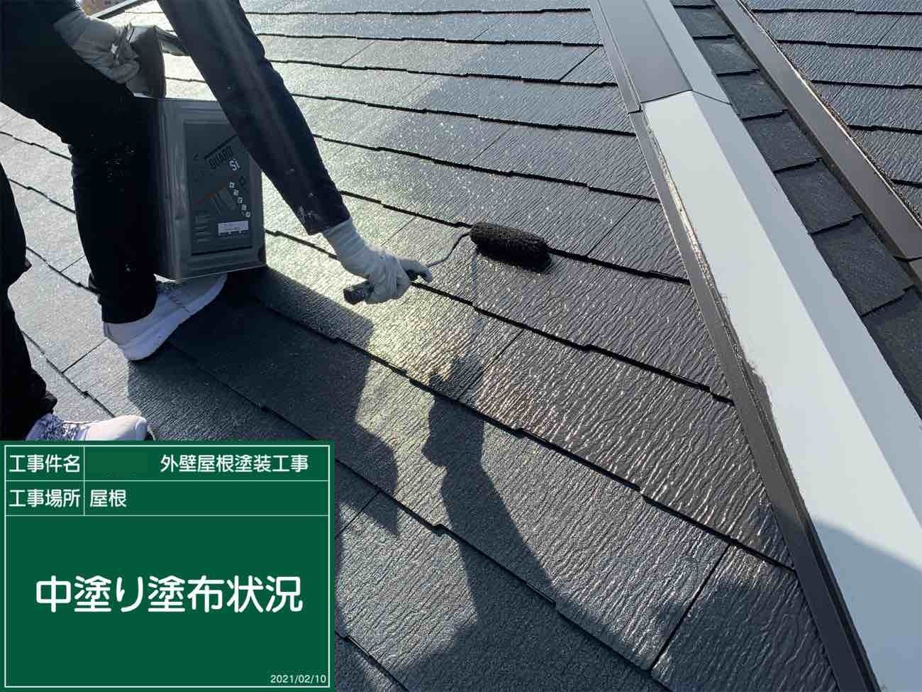お屋根の下塗り作業の様子です。 下塗り作業はは中塗り材との密着度を高める非常に重要な役割です。