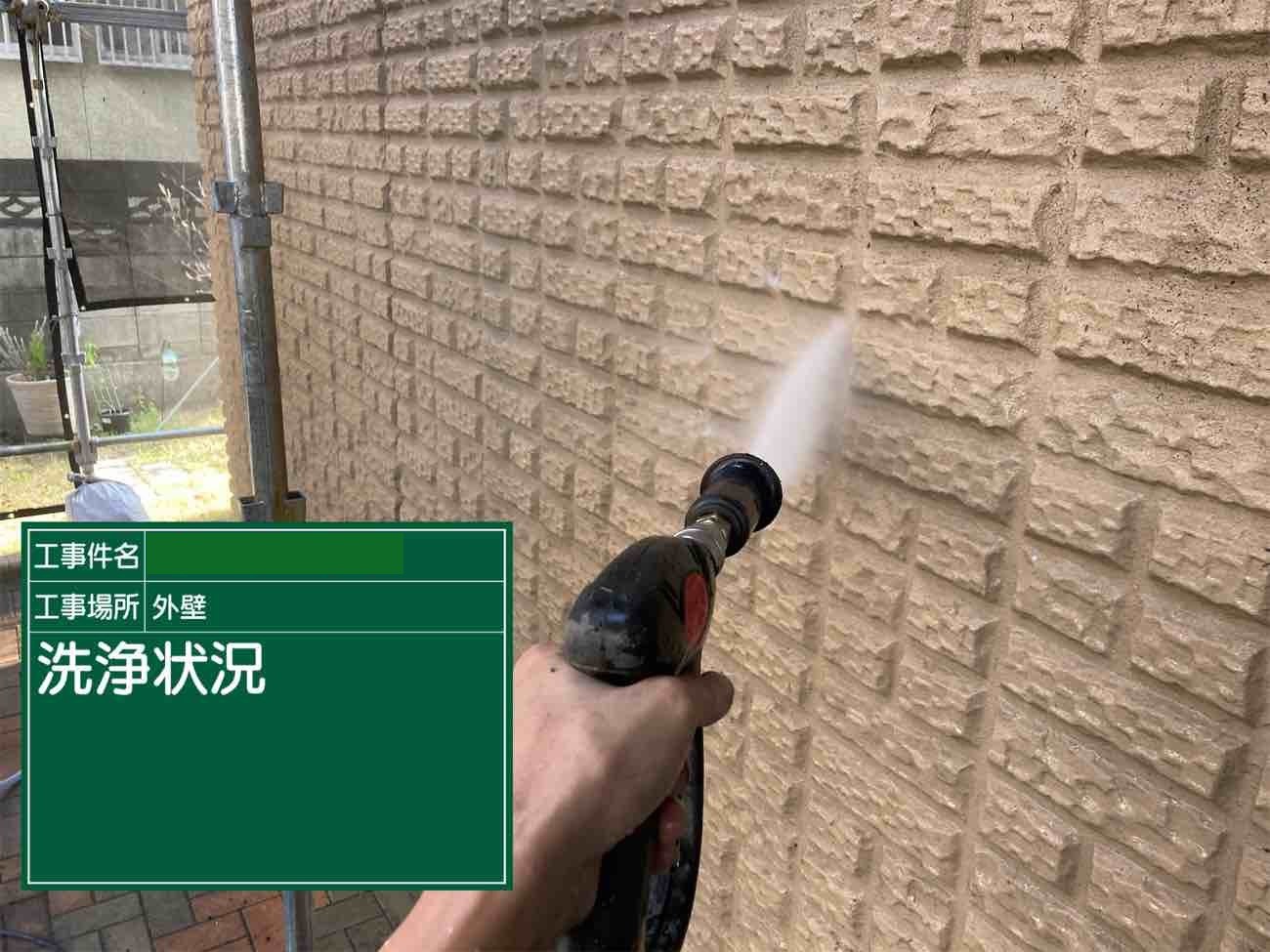 下塗りで一旦、外壁を真っ白にします。 次に色を入れていきます。
