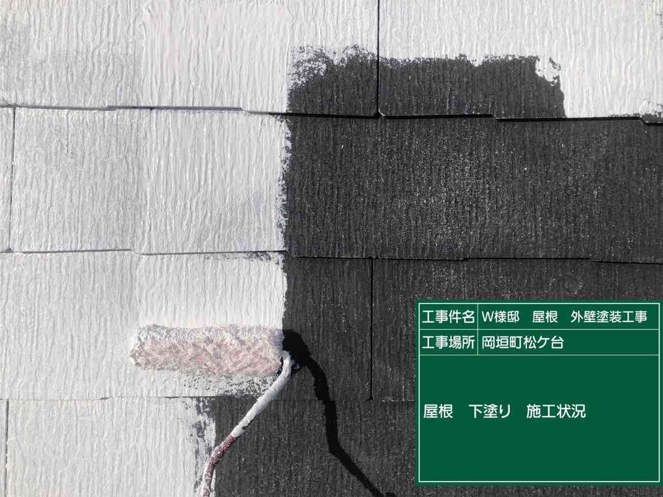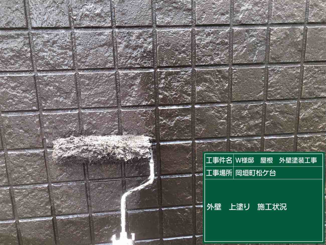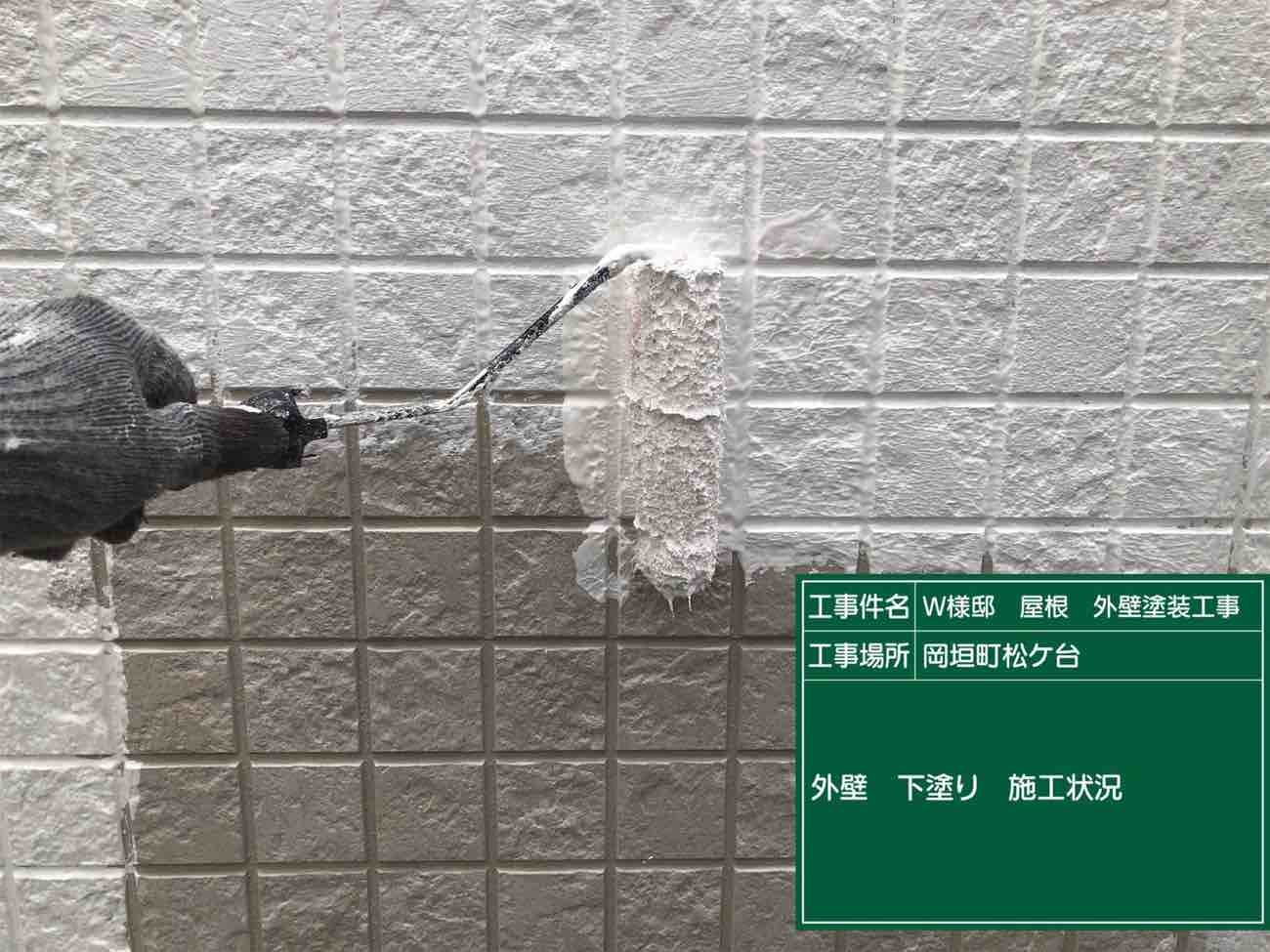 外壁の下塗り作業です。下塗りで外壁の下地との密着性を高めていきます。
