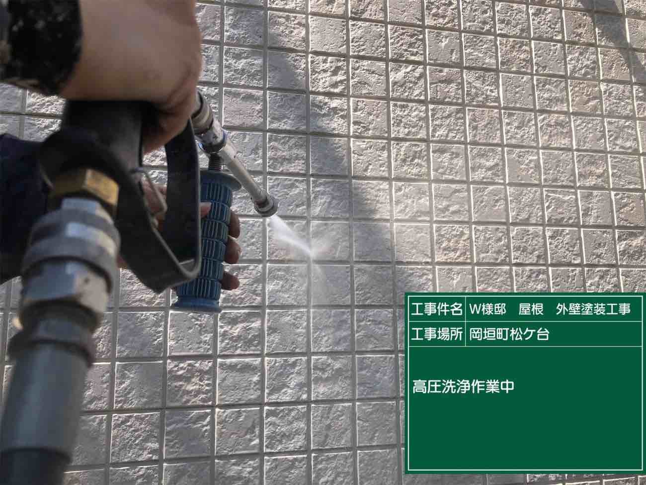 屋根の高圧洗浄作業を行います。屋根材に付着した汚れを落としていきます。