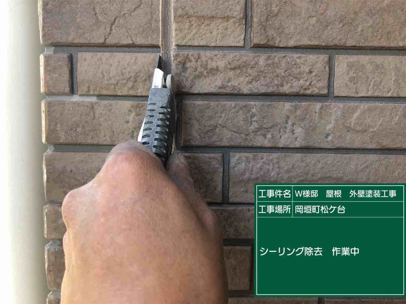 外壁の目地にあるシーリングを打ち替えて行きます。