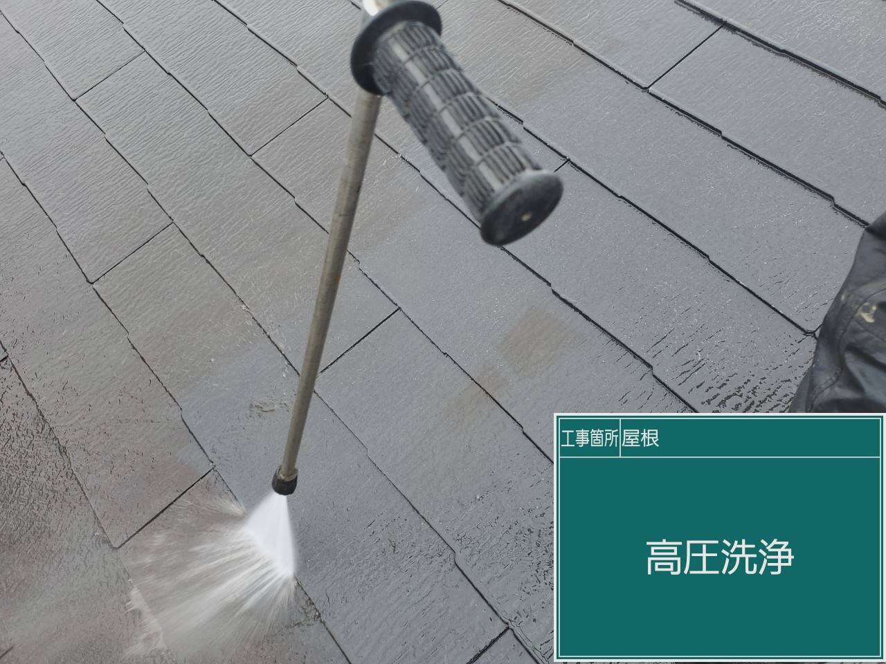 塗装作業の前に洗浄作業にて汚れを落としていきます。高圧洗浄機を使用しています。