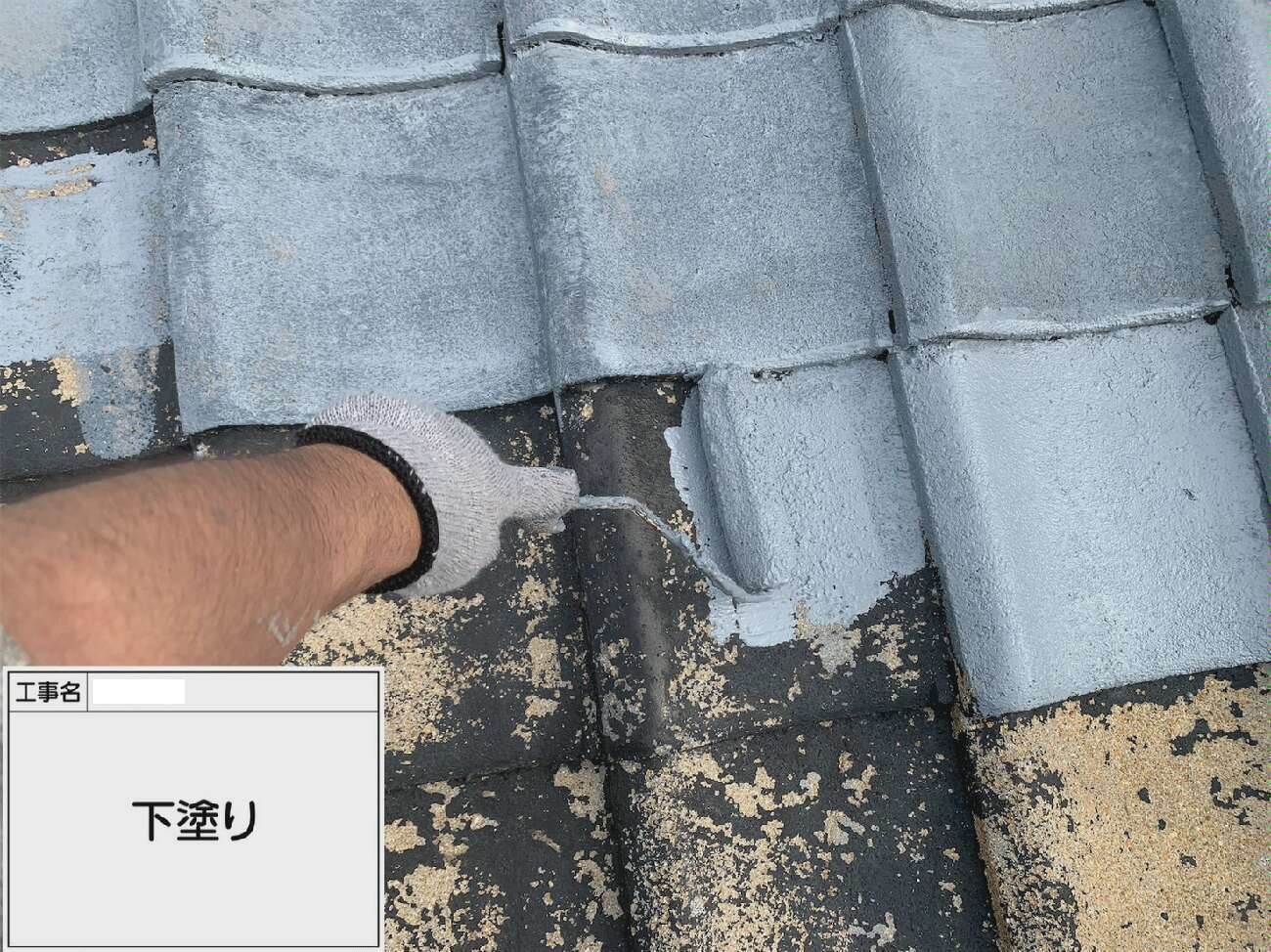 下塗り作業です。 この工程で手を抜くと塗膜が剥がれる原因となりますので注意が必要です。
