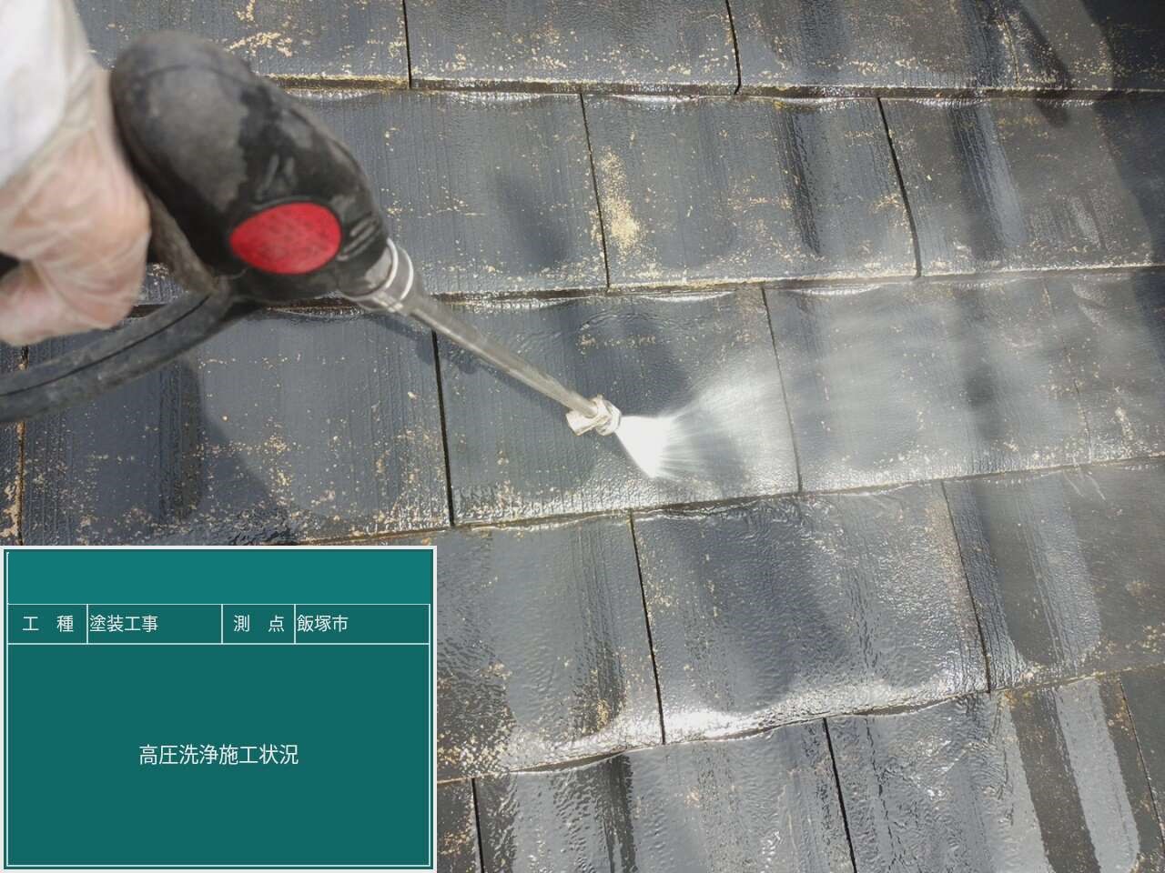 高圧洗浄を利用しこびりついたコケや藻、汚れカビを高圧の水で洗い流していきます。
