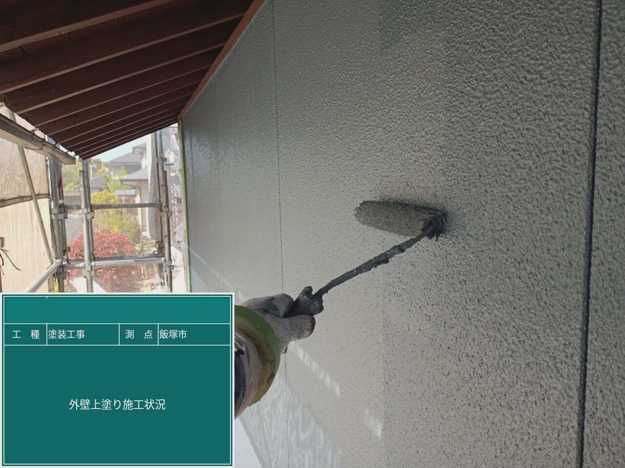 3回塗の3層仕上げが一般的で上塗りが3層目の塗装となります。直接日の当たる箇所となる上に見栄え、耐候性に直接かかわる大切な工程です。