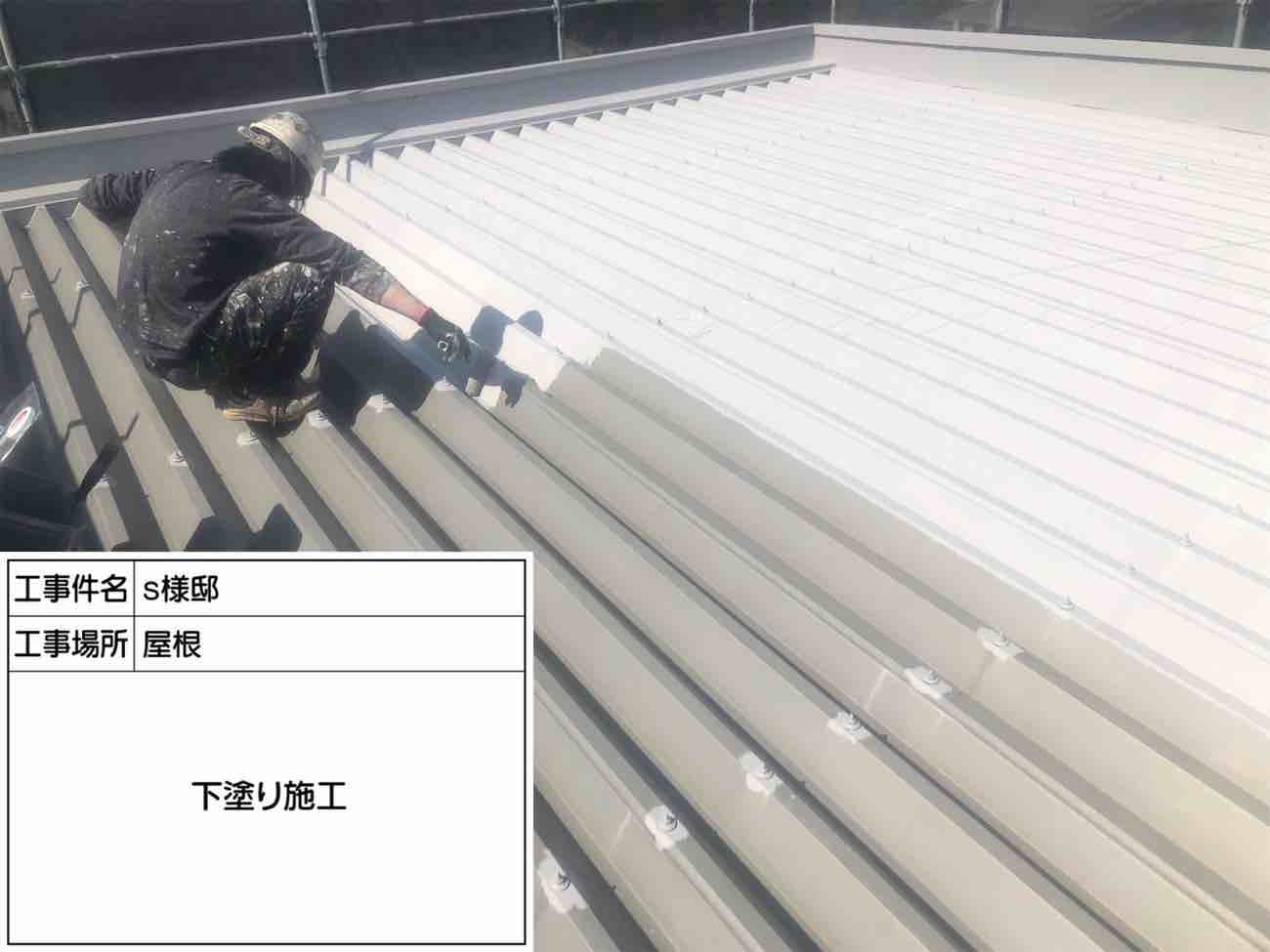 下塗り作業です。 この工程を手抜きすると、塗料が密着せず塗膜剥離の原因になってしまいます。