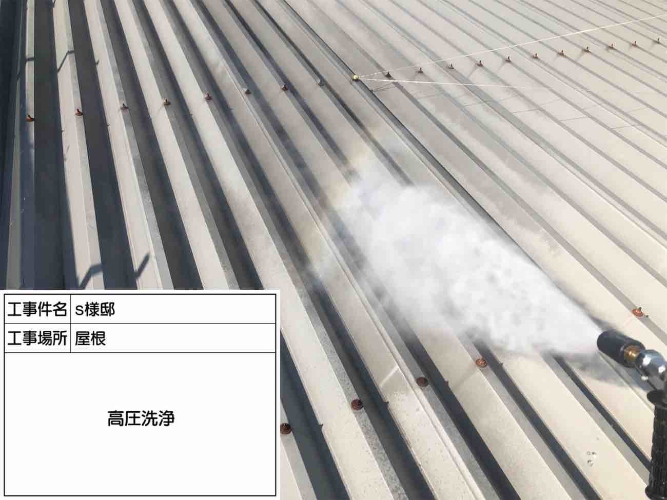こべりついたコケや藻・汚れ・カビなどを高圧の水で洗い流します。