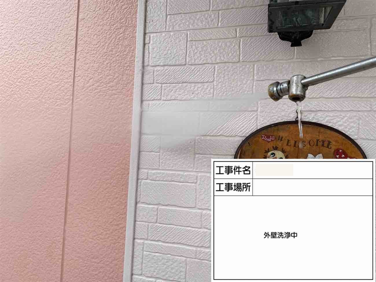 まずは、外壁についた汚れを丁寧に洗い流していきます。