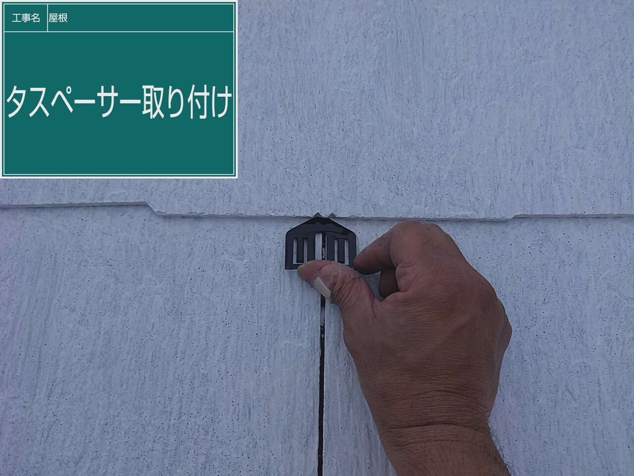 次に屋根と屋根の間にタスペーサーを取り付けていきます。空気の通り道を作ります。