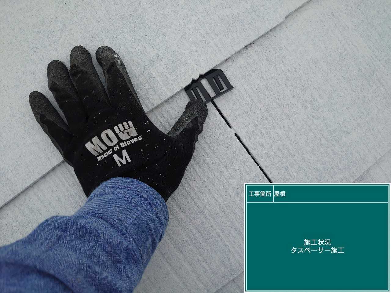 次に下塗りが完了したら、屋根の間にタスペーサーを取り付けます。