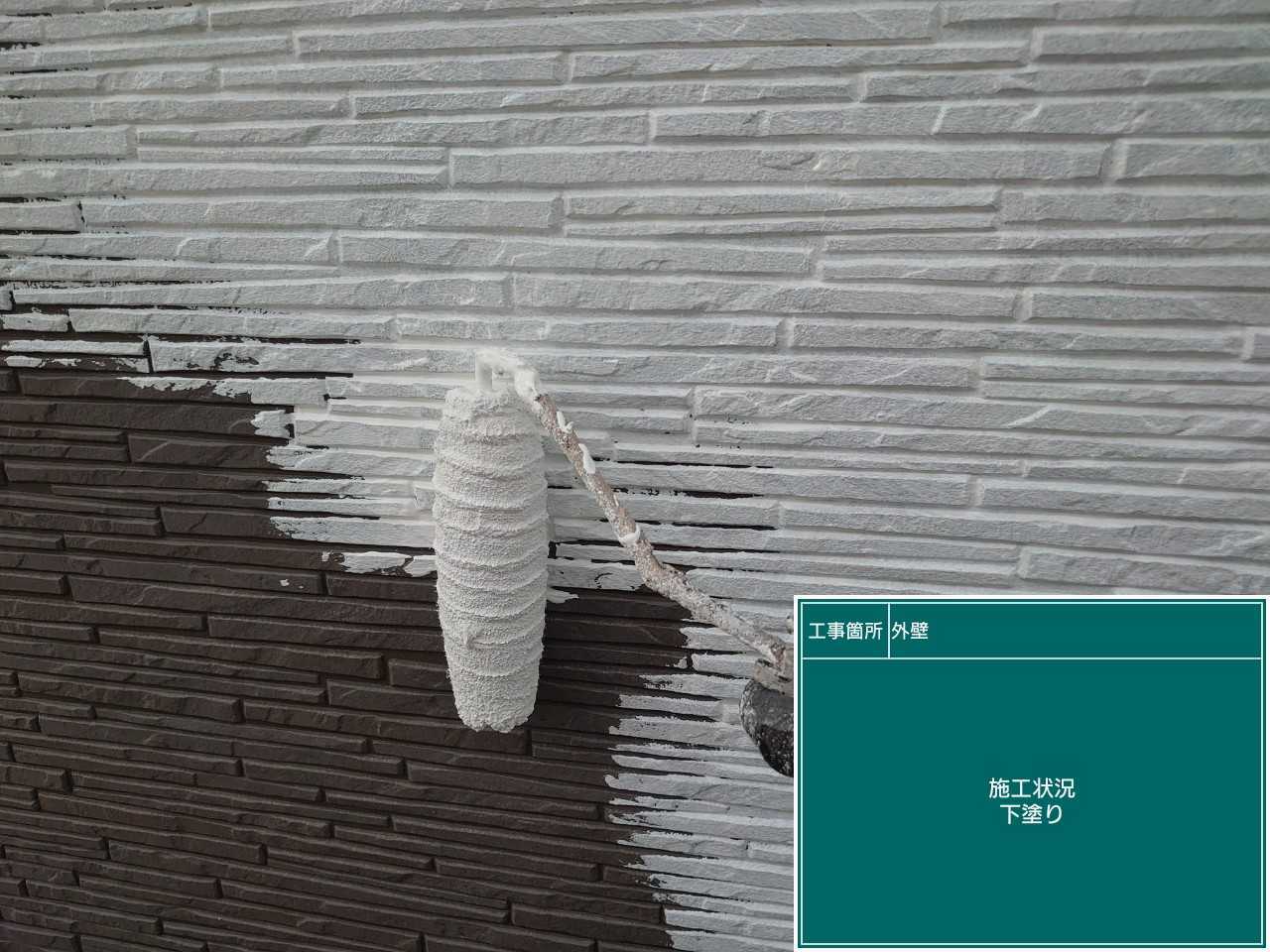 まずは下塗り塗装作業です。これは下塗りで下地と塗料の密着性を高めていく工程になります。