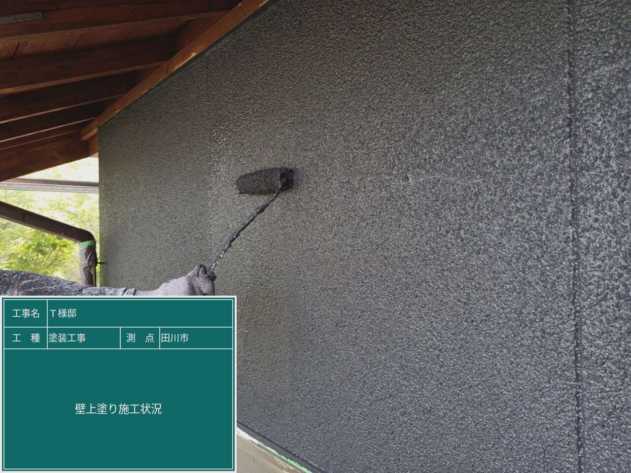 外壁は3回塗りの3層仕上げが一般的で仕上げである3層目の塗装にあたるのが上塗りです。見栄え、耐水性に直接関わる大切な工程です。