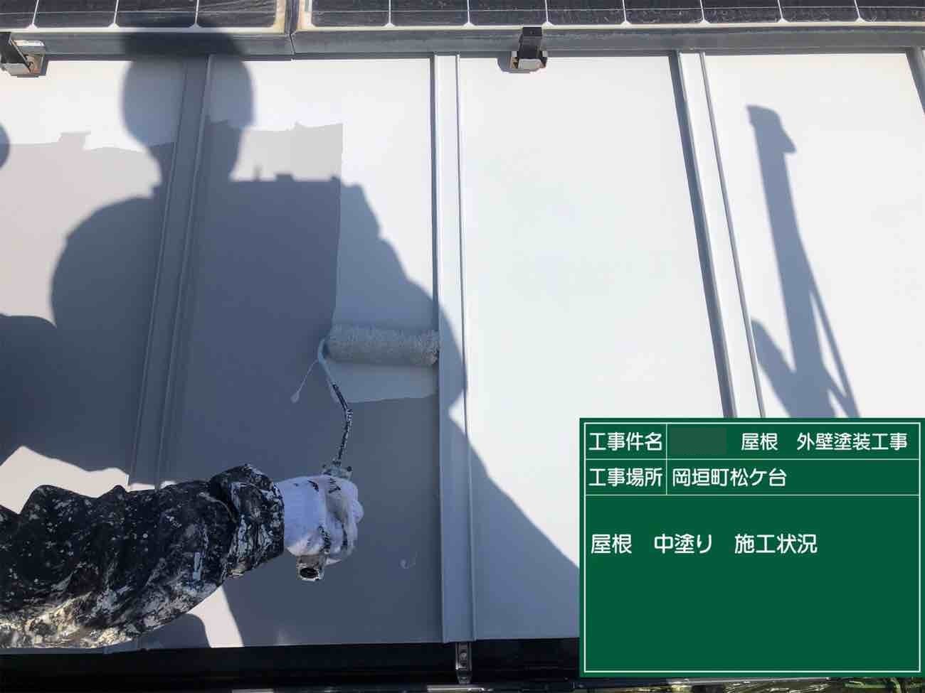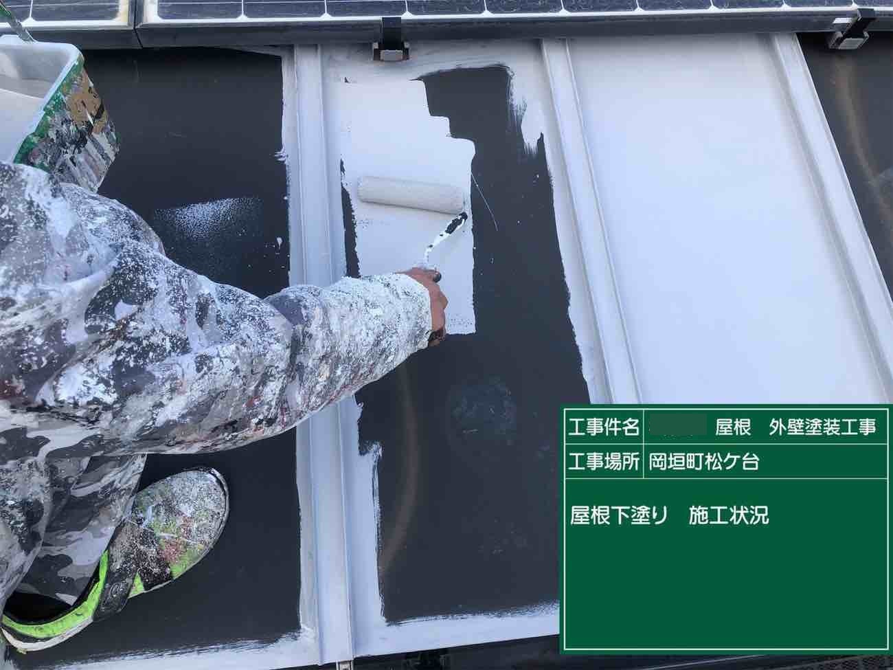 屋根の下塗り塗装です。折半屋根は鉄になりますので専用の下塗りを塗っていきます。