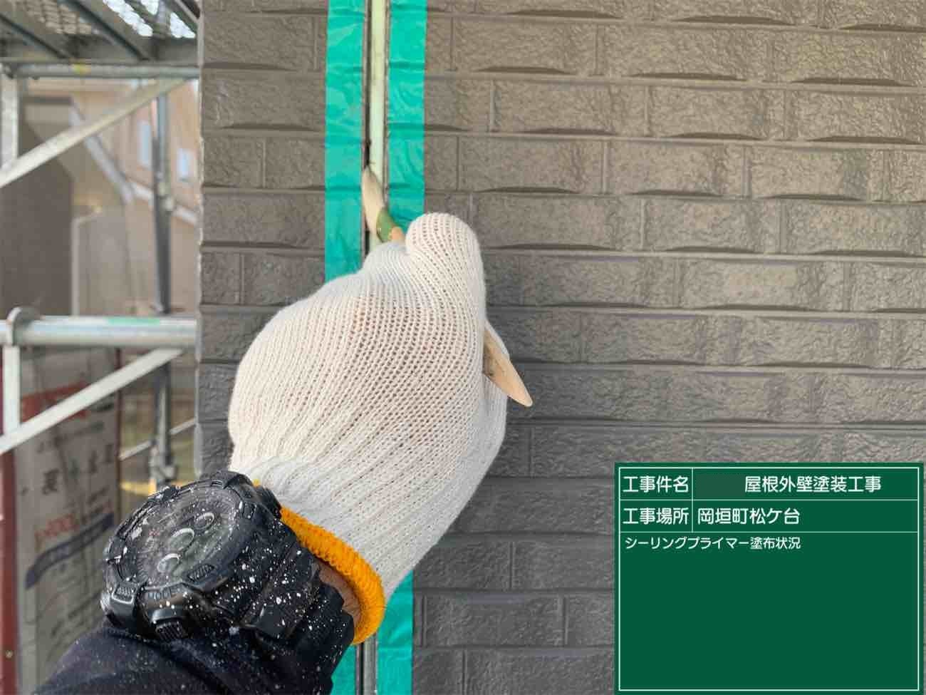 目地の側面にプライマーという接着作用のあるものを塗布していきます。