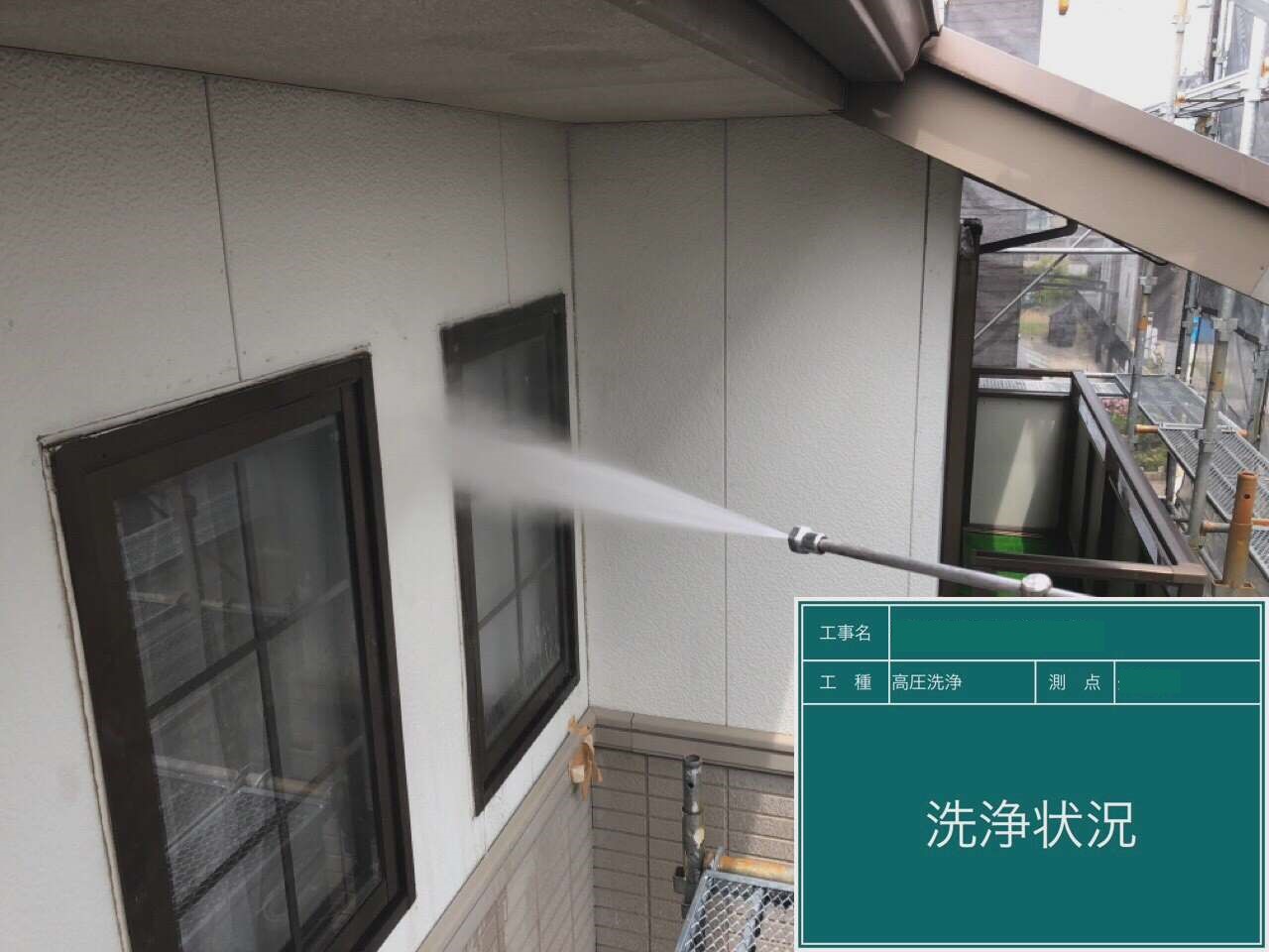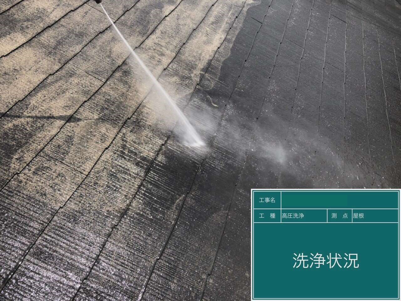 屋根には、コケやカビがついているので、高圧洗浄機を用い、丁寧に洗い流していきます。