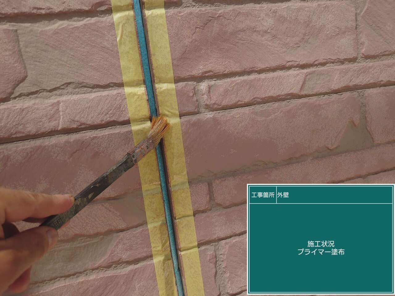 目地の側面にプライマーを塗布し側面の2面接着するようにしていきます。