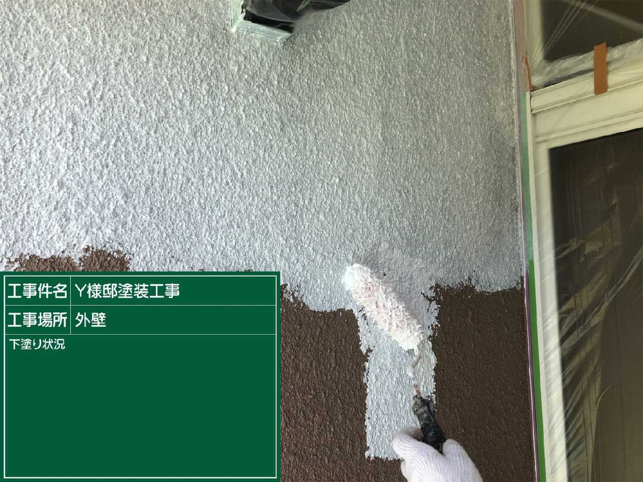 外壁も工程の進み方は屋根と同様です。まずは下塗りを行っていきます。