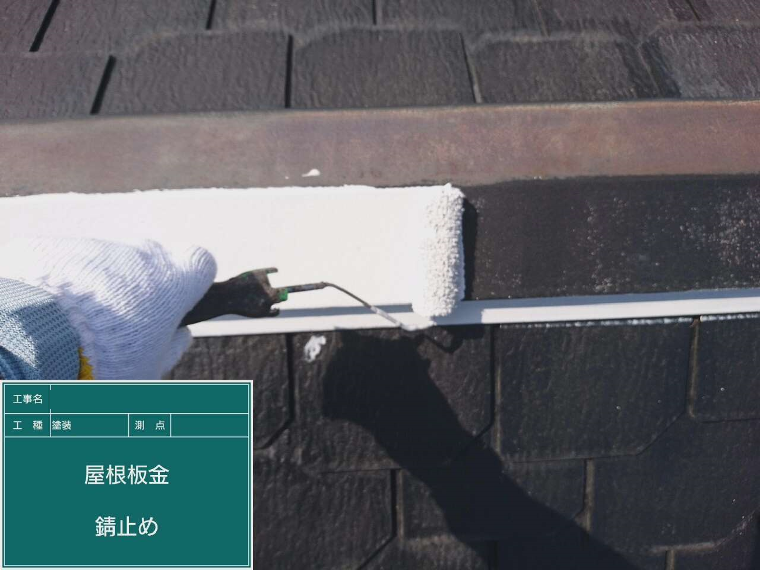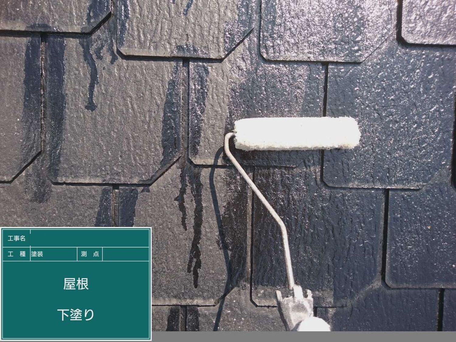 一部塗料を垂らしたようになっている部分は瓦の溝の部分でローラーでは塗れない為初めに刷毛で塗ってしまいます。
