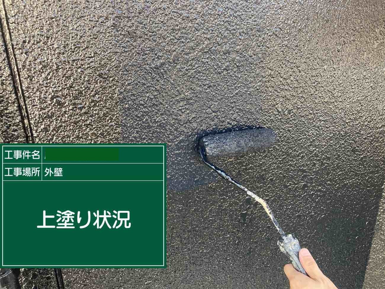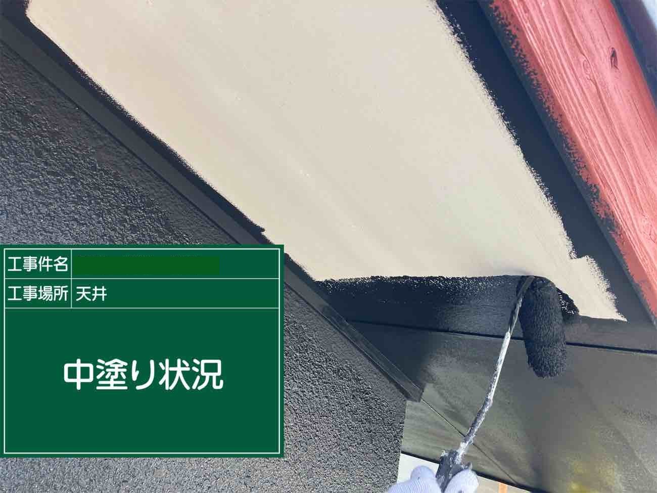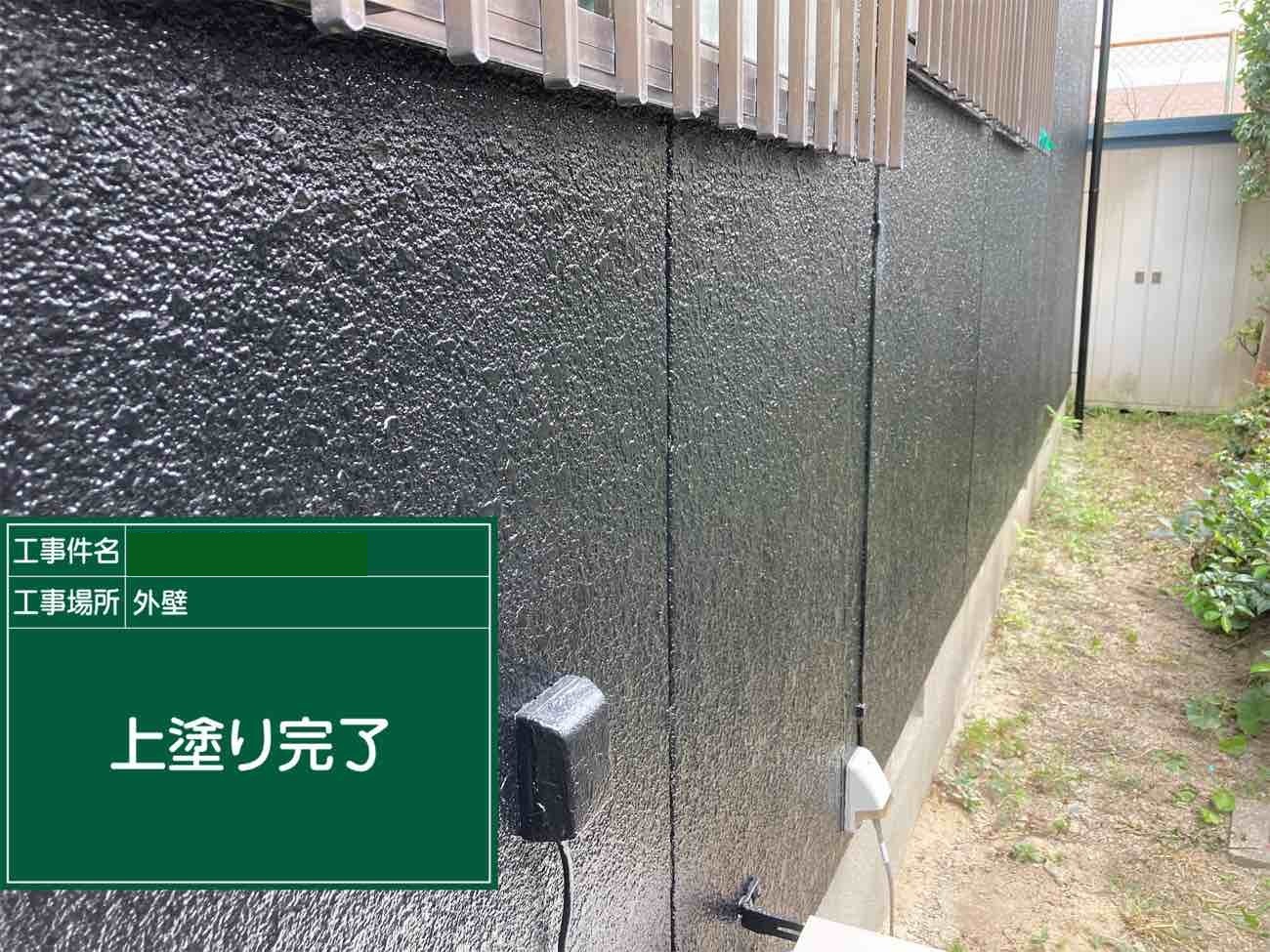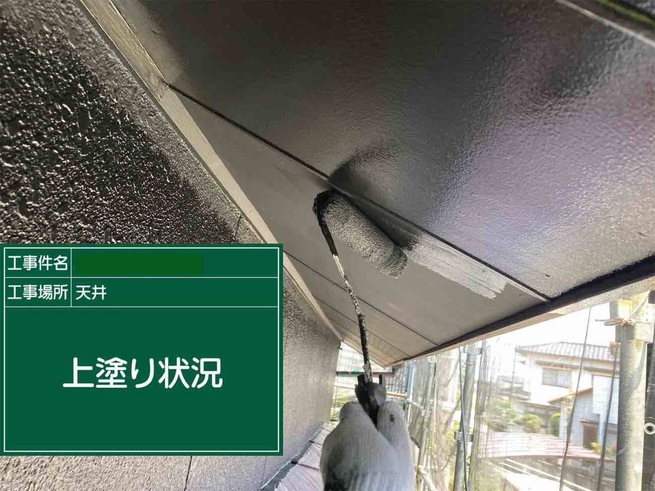 上塗りで仕上げていきます。 軒天を黒にするだけでも雰囲気が変わります。