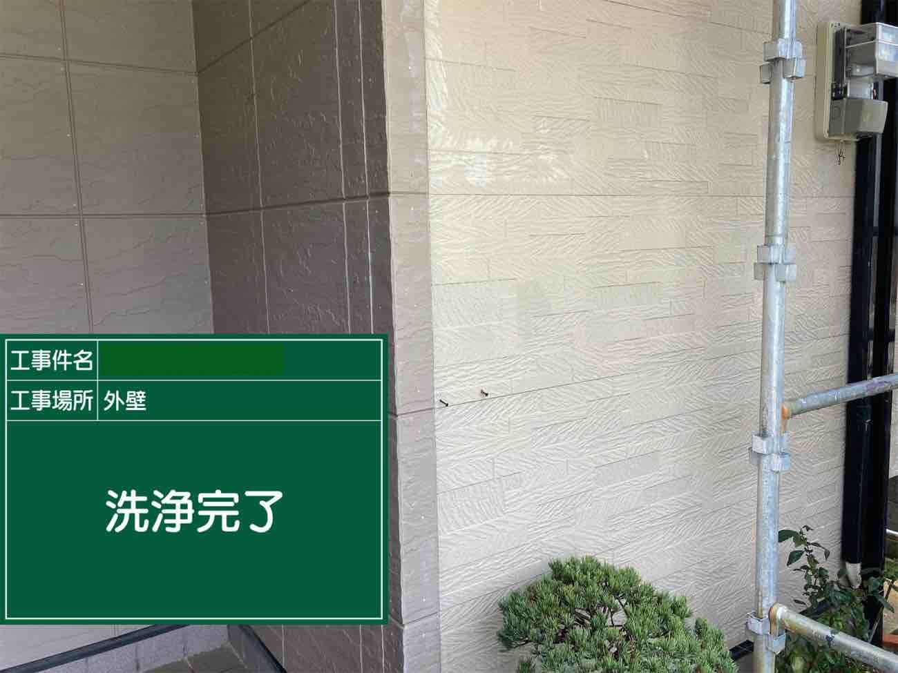外壁には沢山の汚れがついています。 しっかり洗い流すことで、塗料の浸透性も変わります。