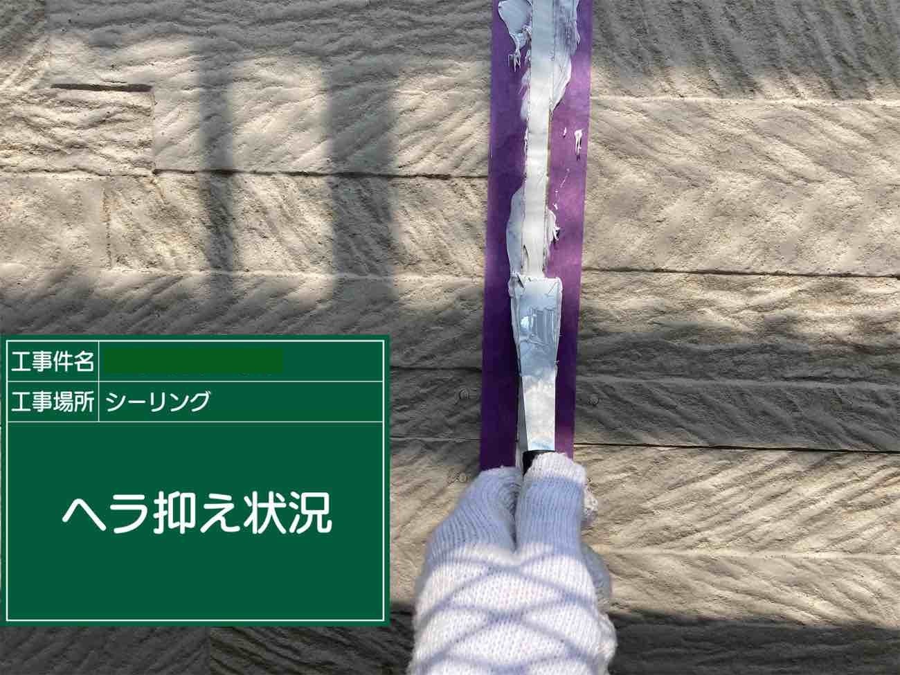 充填したシーリングをへらで抑えていきます。