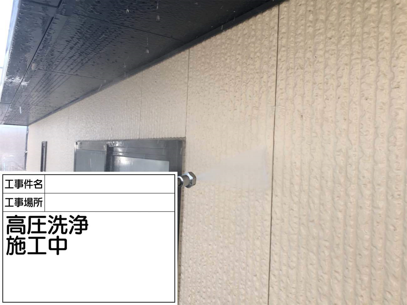 屋根と同様、高圧洗浄を行いしっかりと汚れを落としていきます。