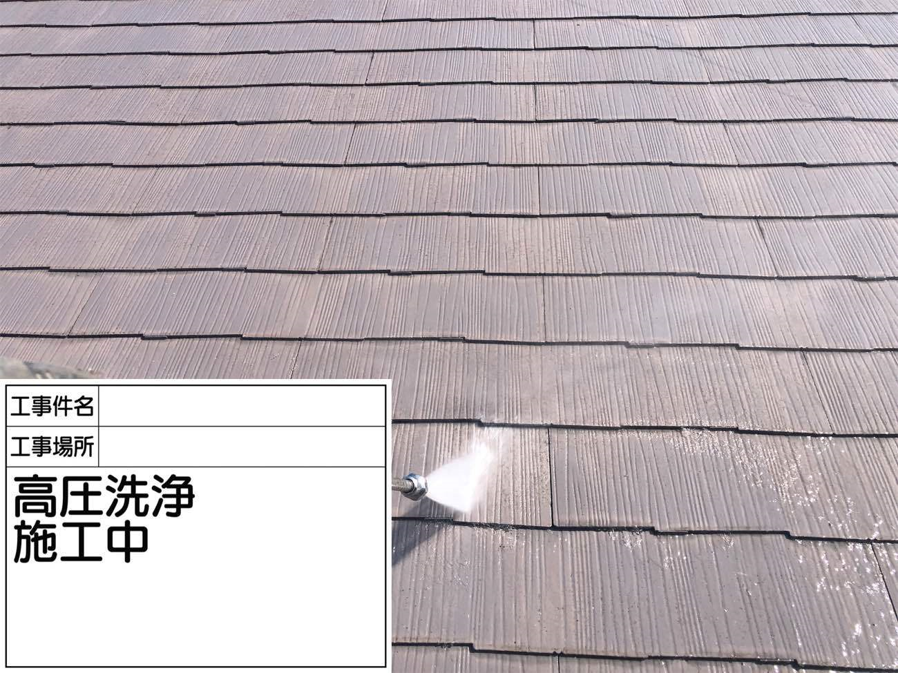 紫外線が直接当たる屋根は高圧洗浄でしっかりと汚れなどを落としていきます。
