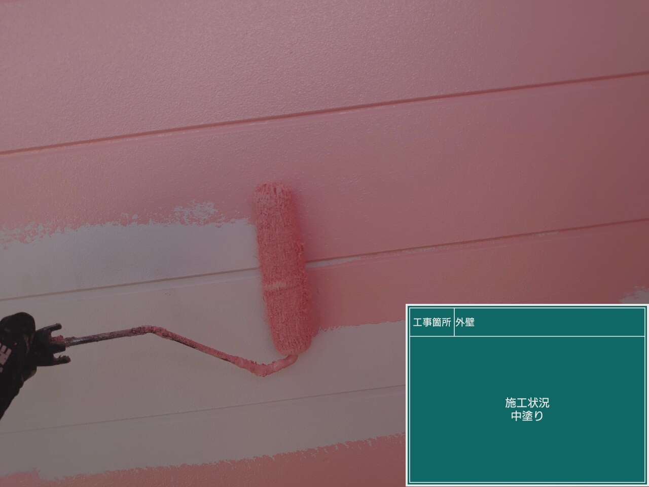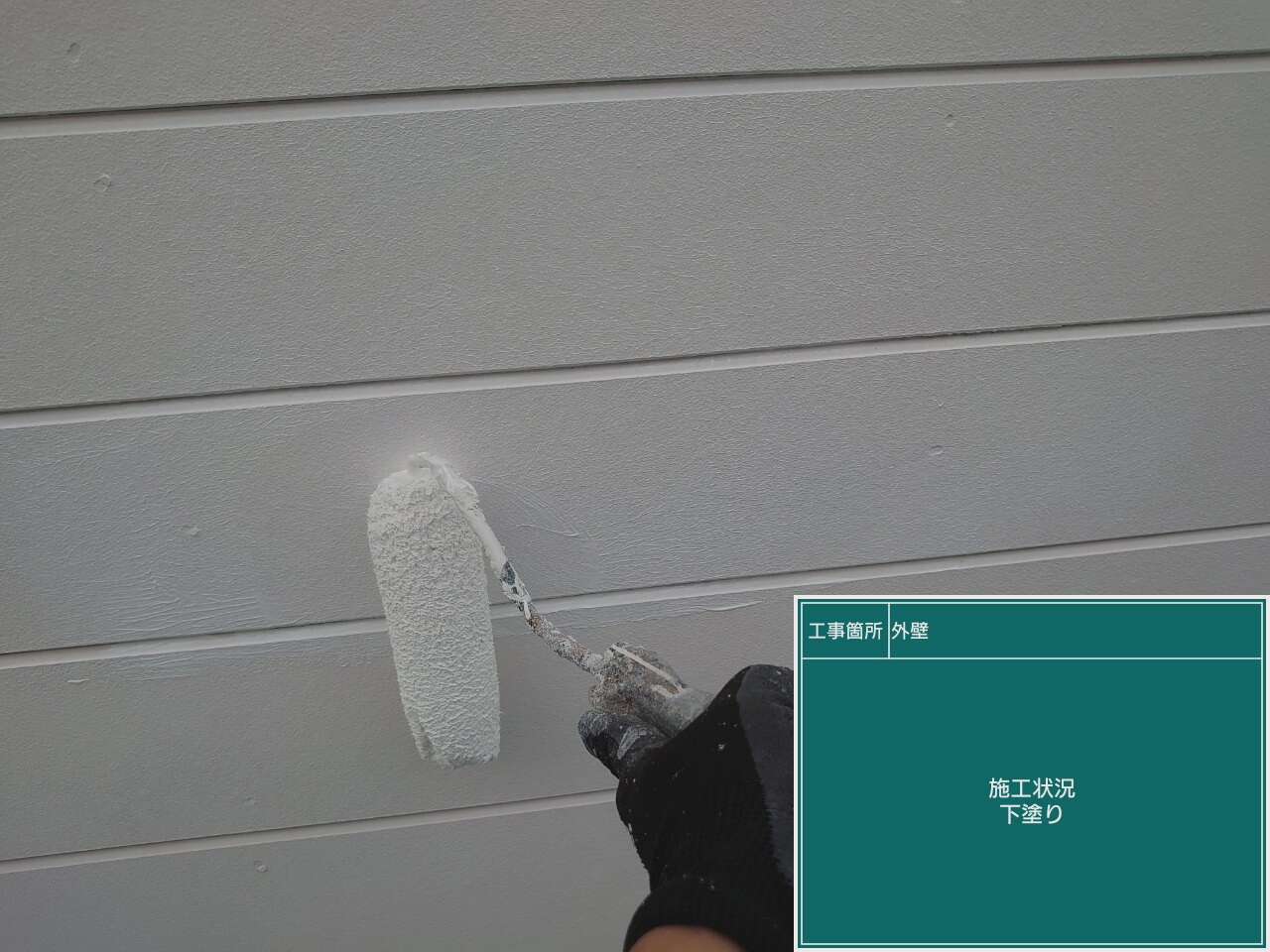 外壁も下塗り、中塗り、上塗りの順に塗装を行います。