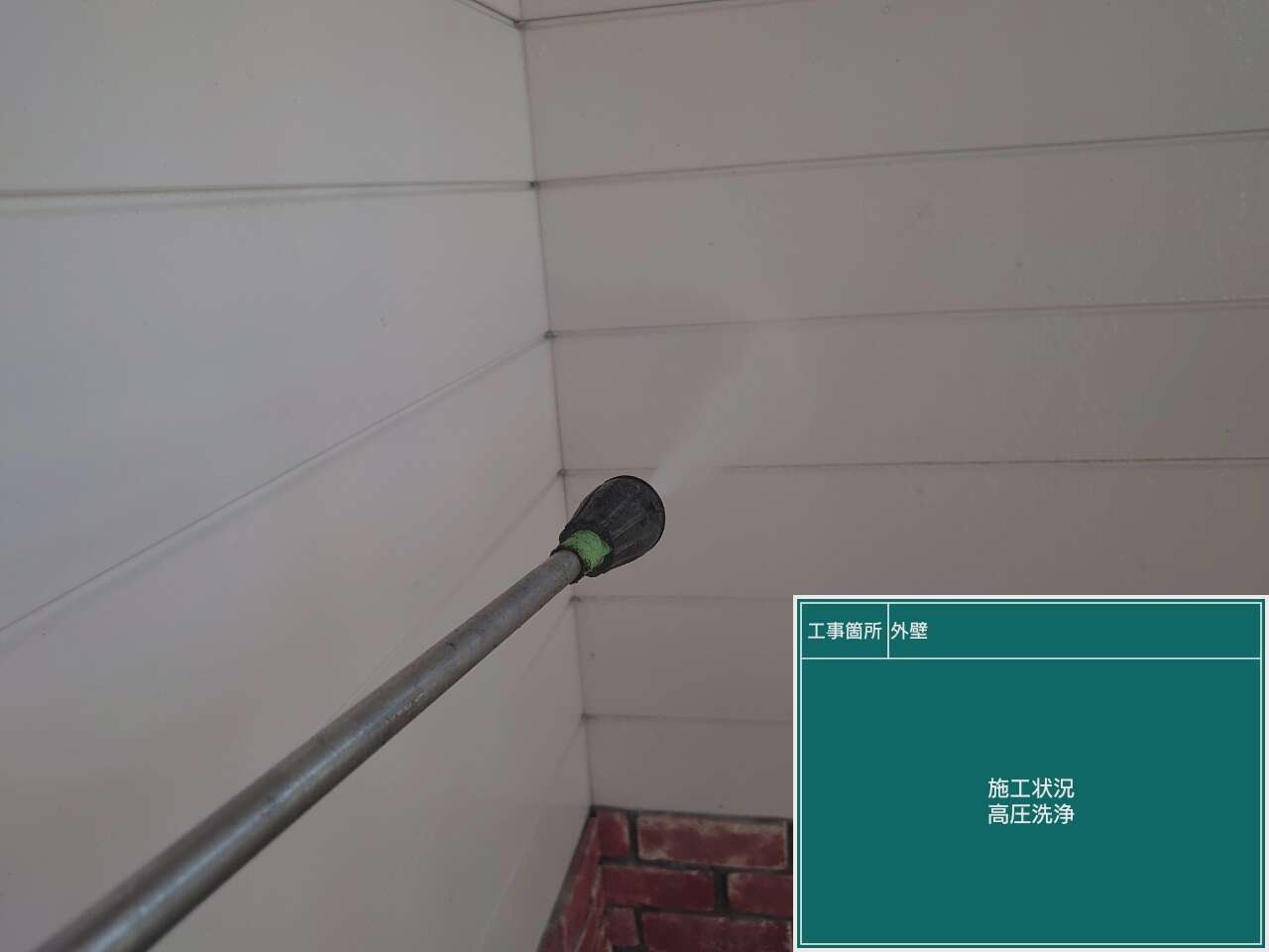 高圧洗浄を行います。高圧洗浄機を使用し洗浄作業を行います。