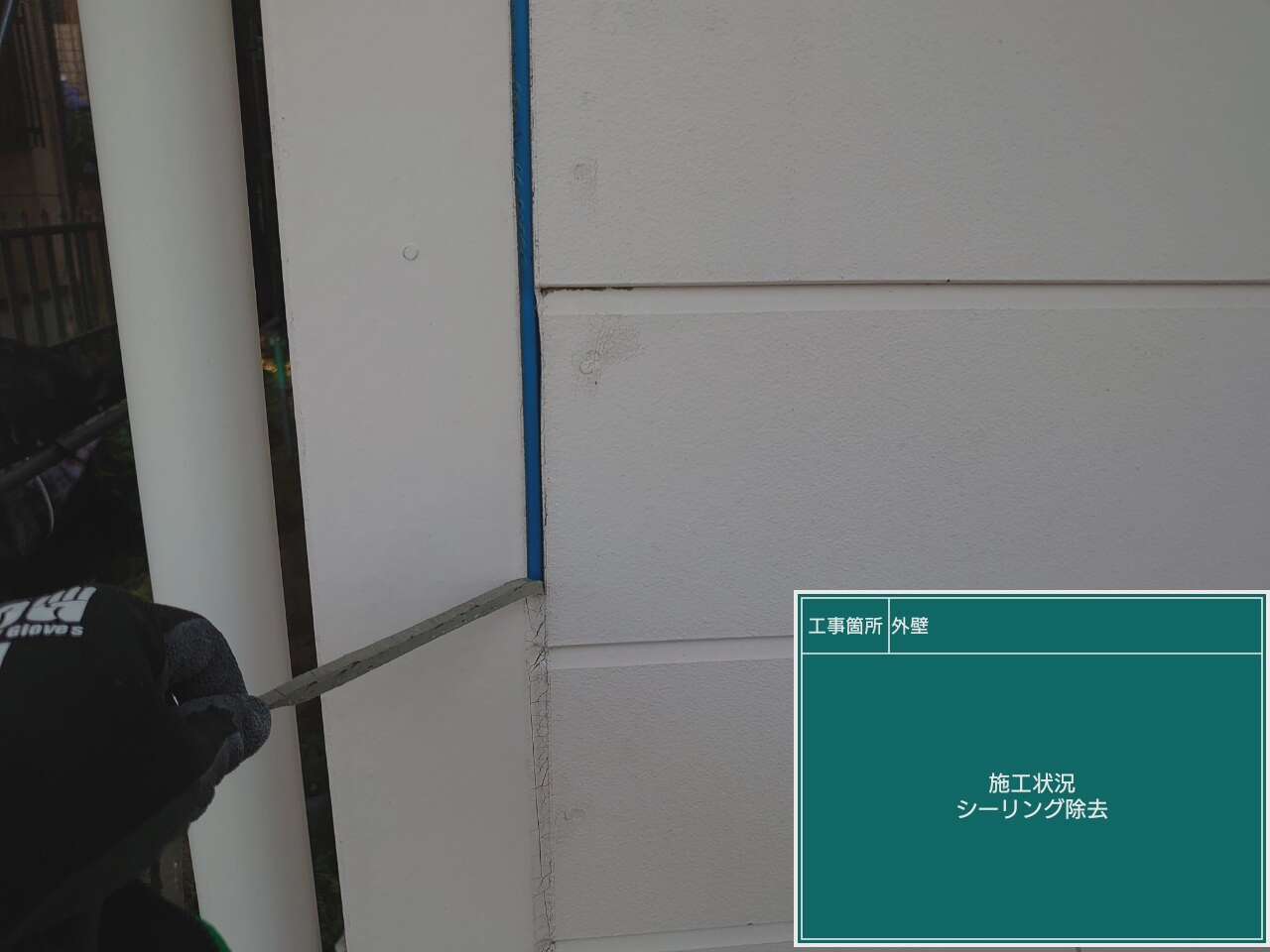 目地の既存のシーリングを撤去します。