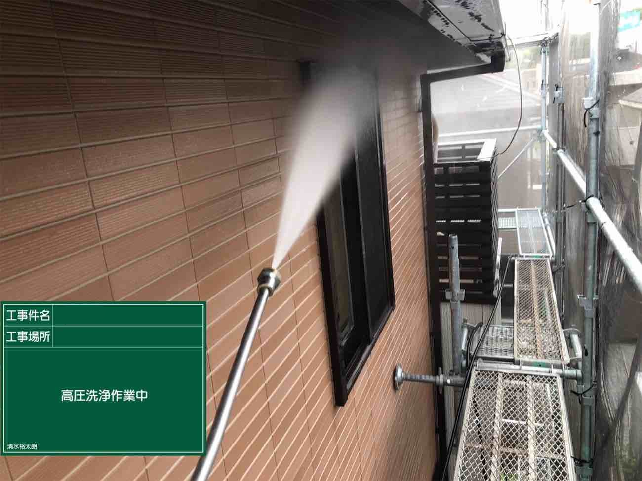 高圧洗浄を行い、汚れを綺麗に落としていきます。