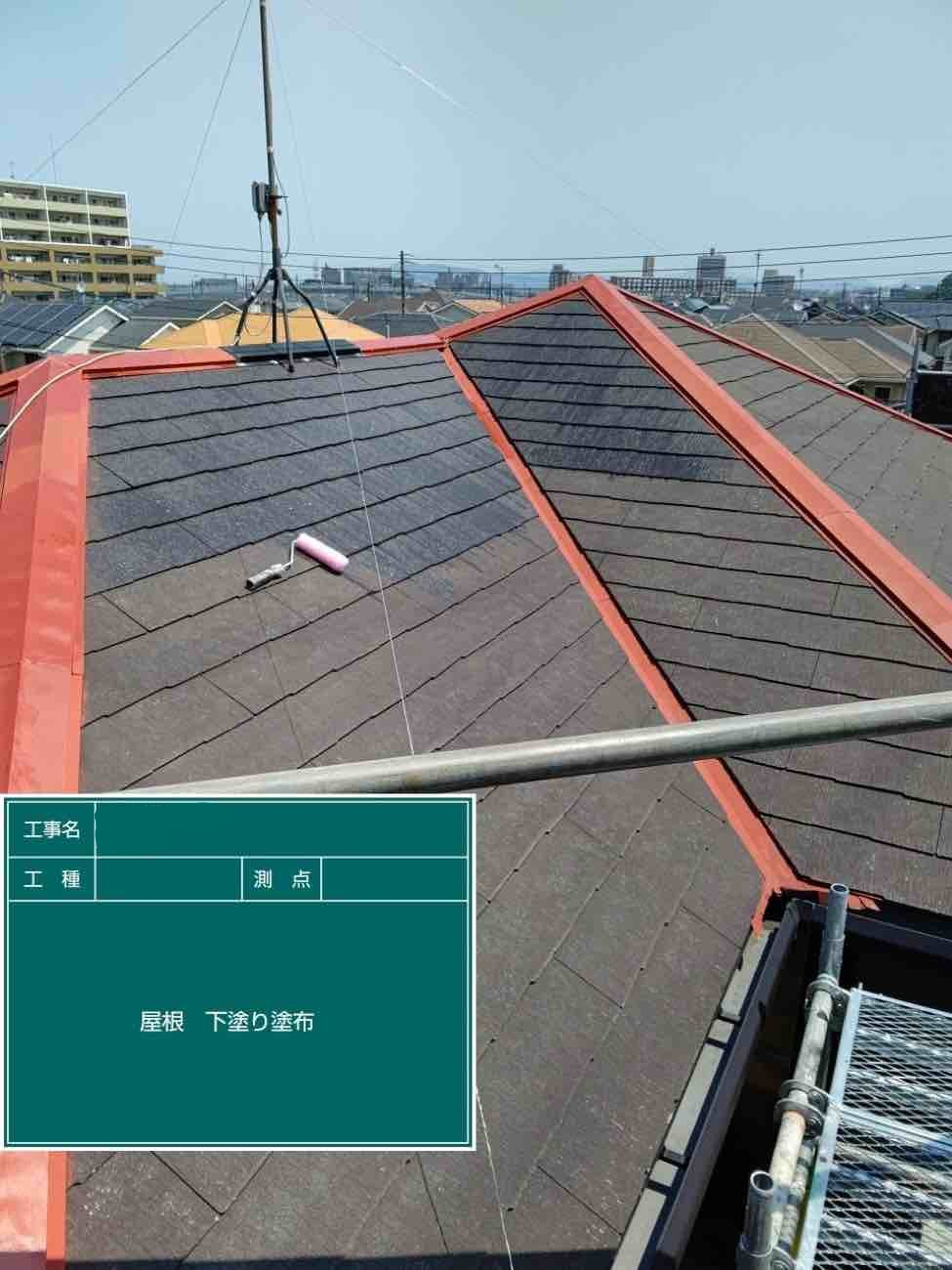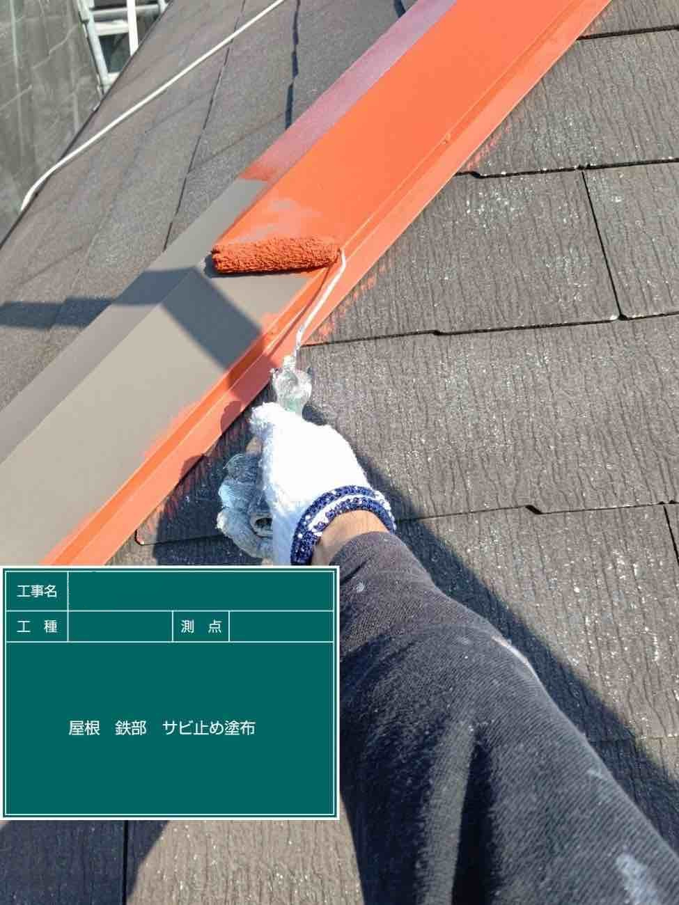 屋根板金に錆止めを塗布していきます。