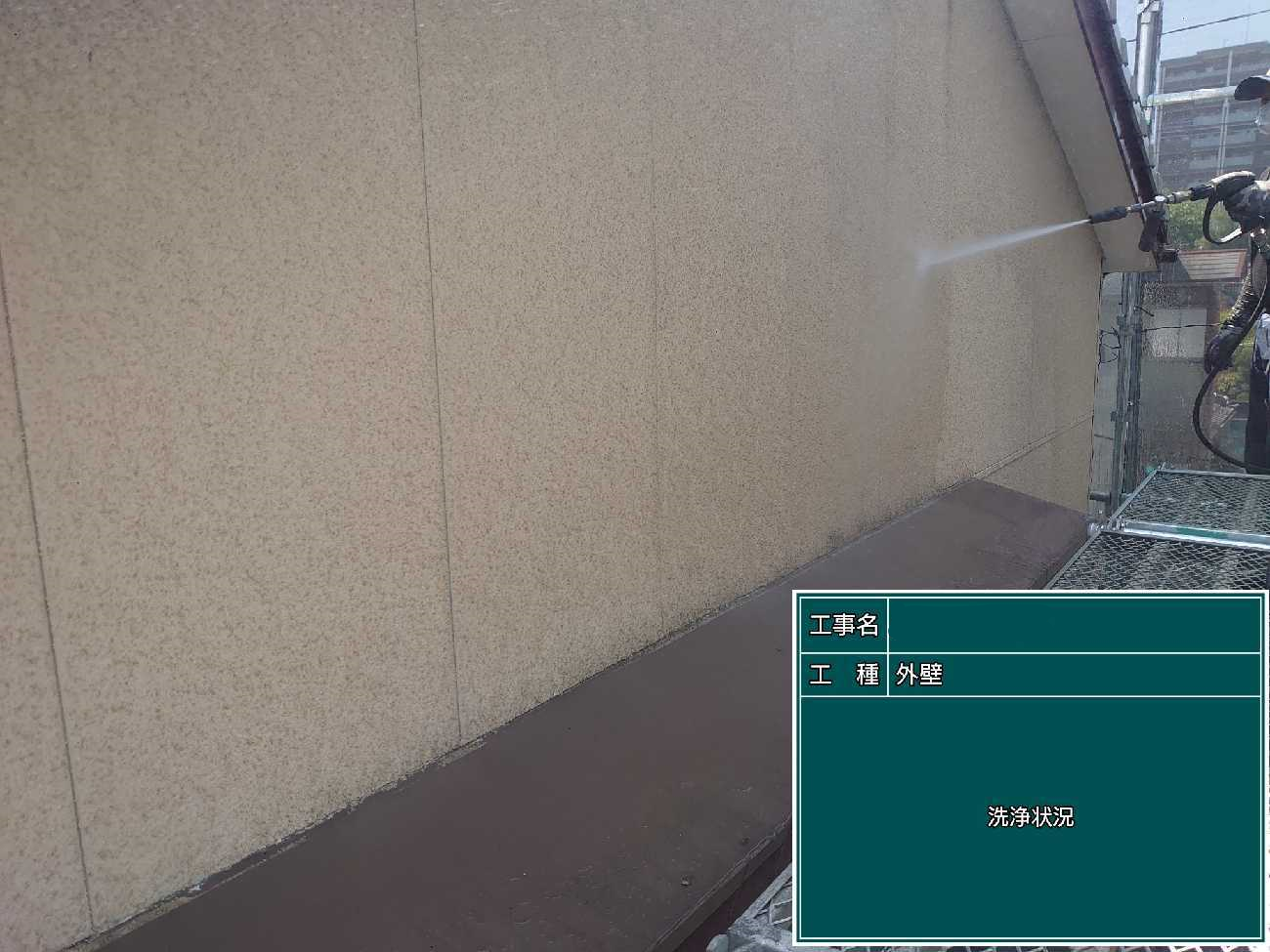 外壁も、屋根と同様高圧洗浄で汚れを落としていきます。