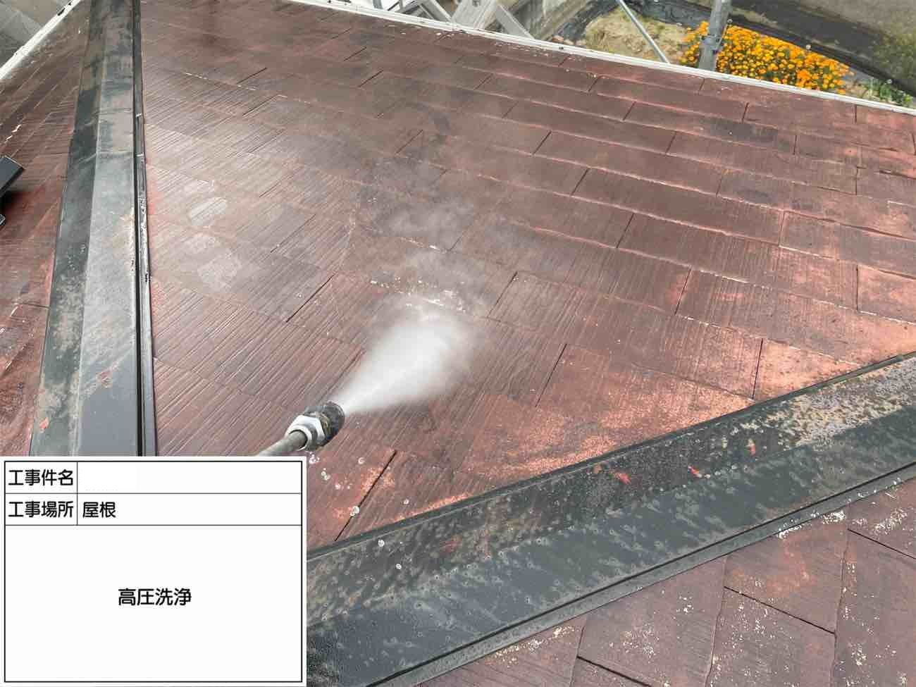 紫外線が直接当たり、細かい汚れなどが沢山つくため高圧洗浄を行い、しっかりと綺麗にしていきます。