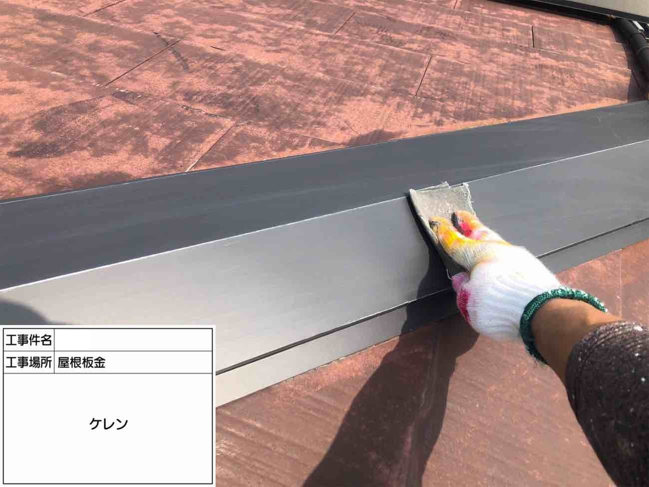 屋根板金のケレン作業を行います。 これは鉄部の下地処理です。