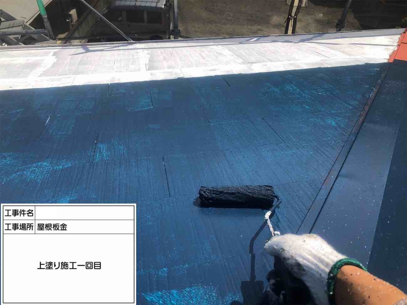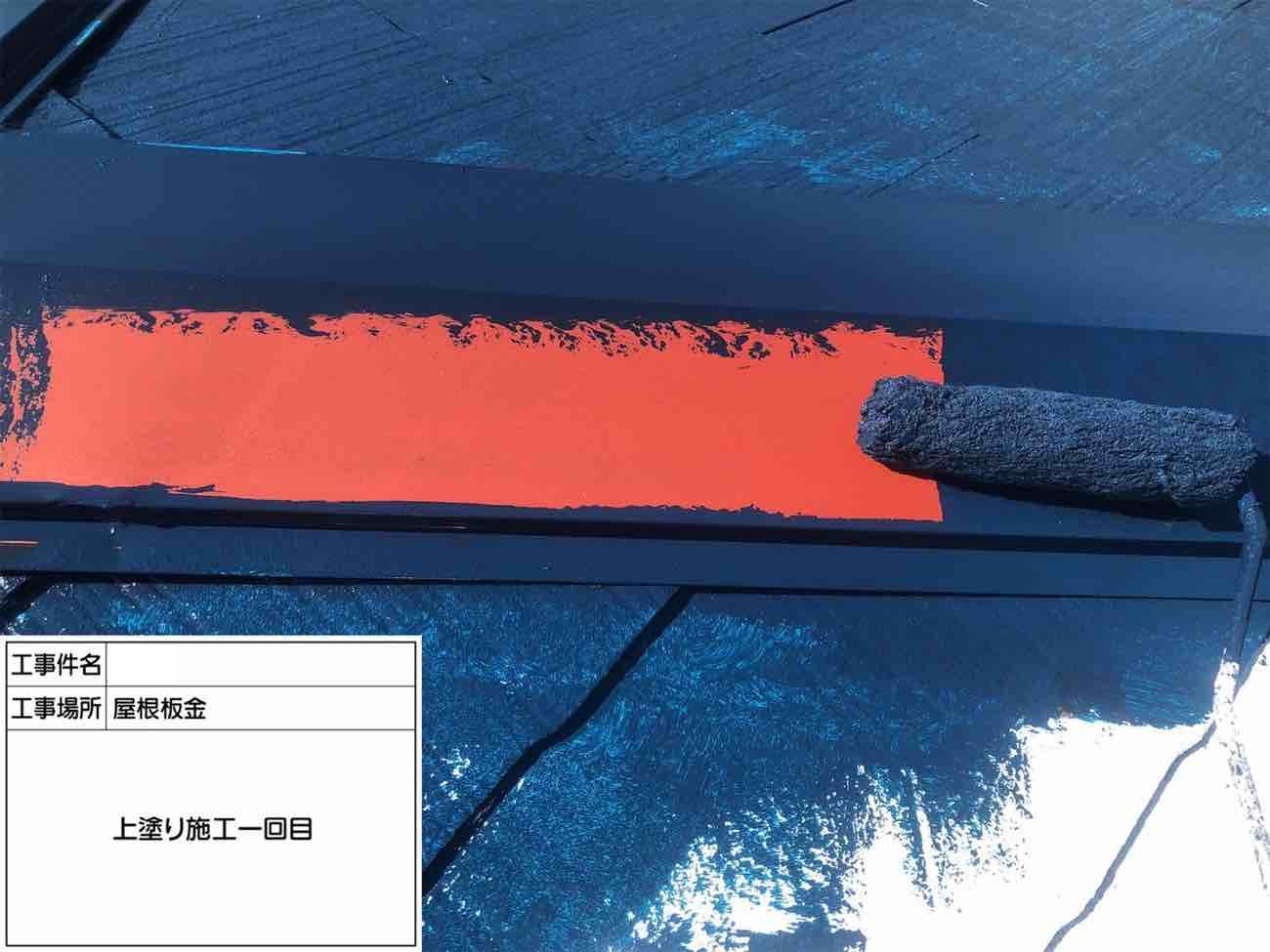 屋根板金最後の工程です。丁寧に重ねて塗っていきます。