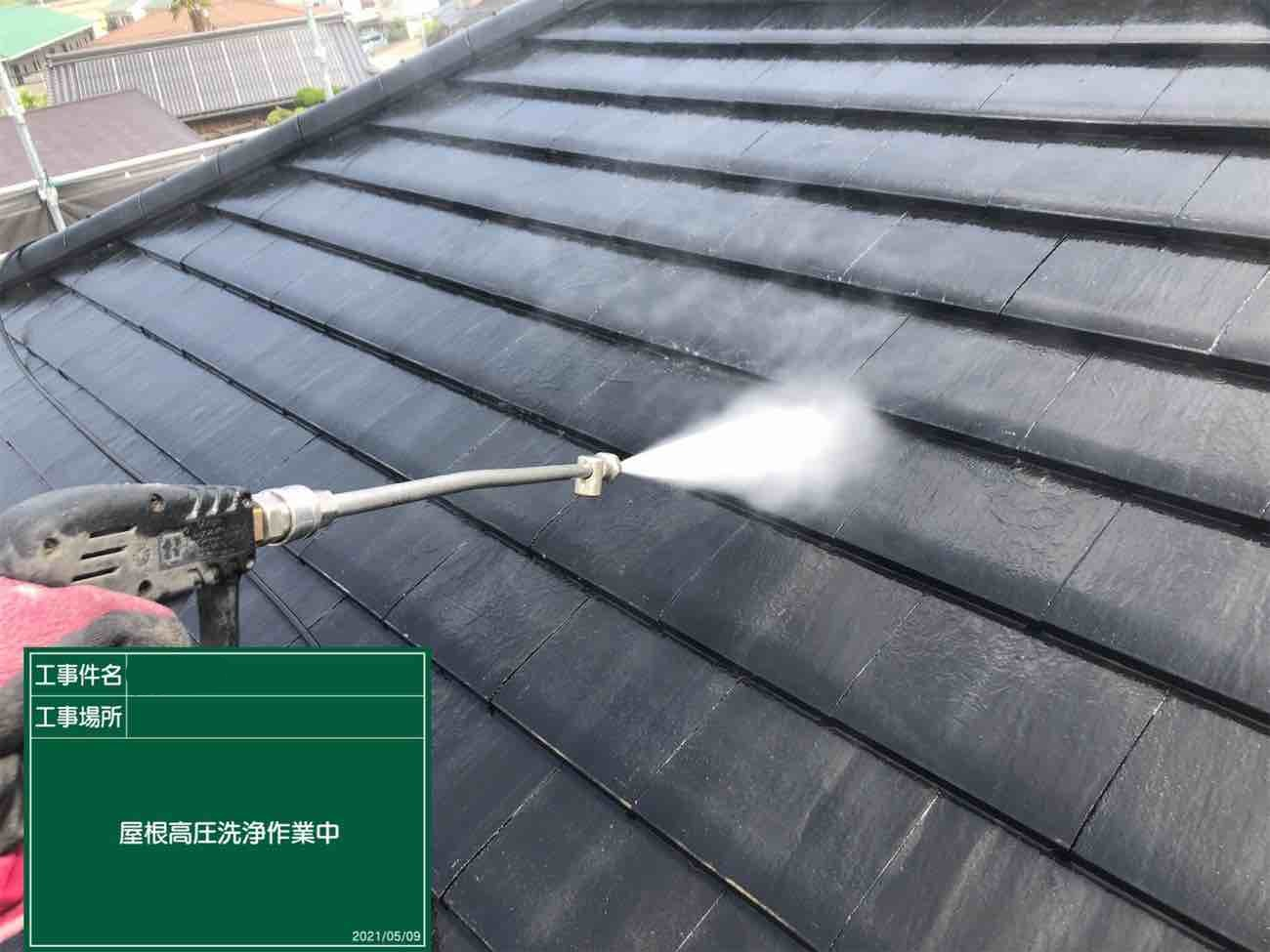 紫外線が直接当たる屋根を高圧洗浄で綺麗にしていきます。