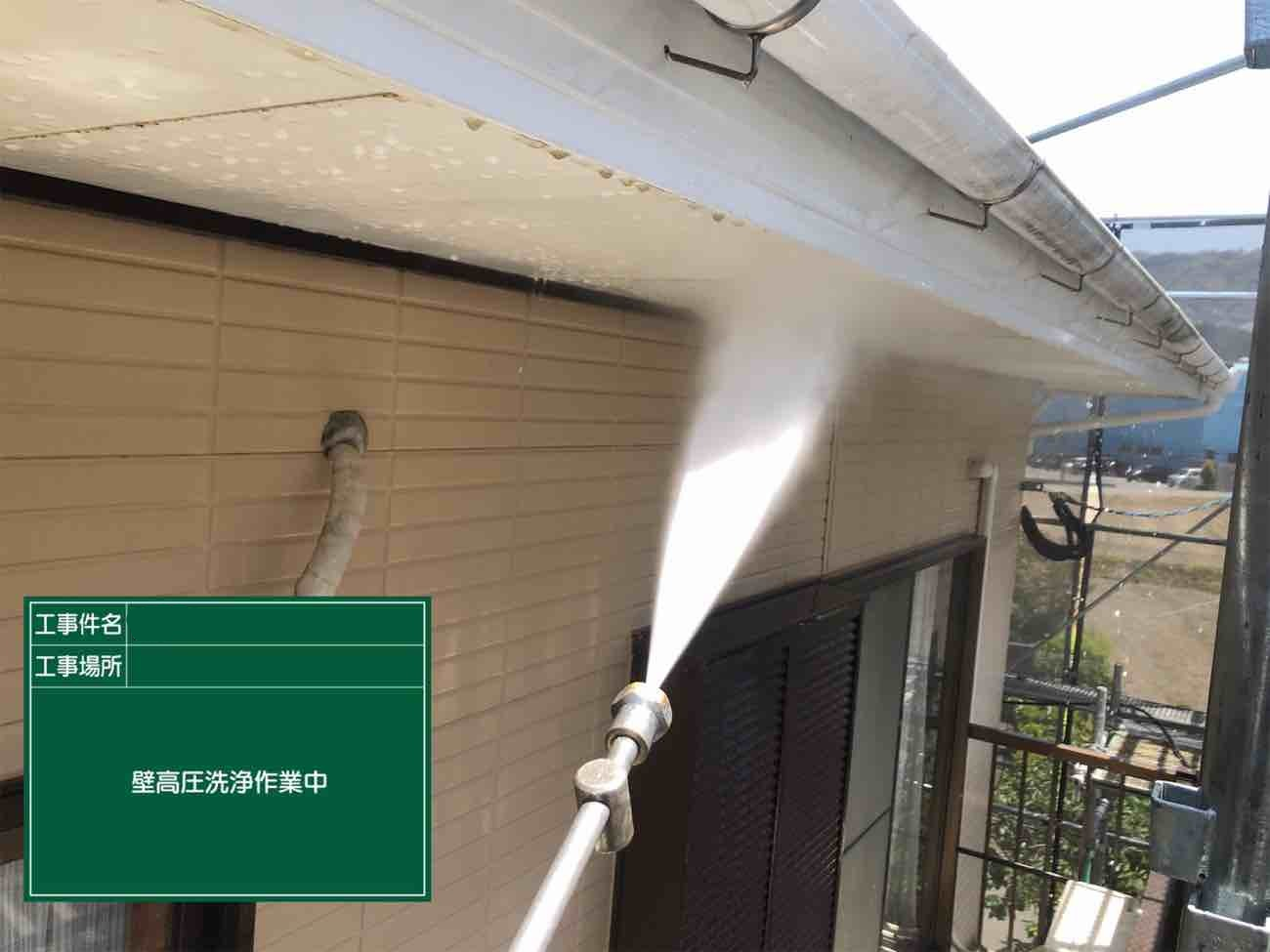 外壁も同様、高圧洗浄で汚れを落としていきます。