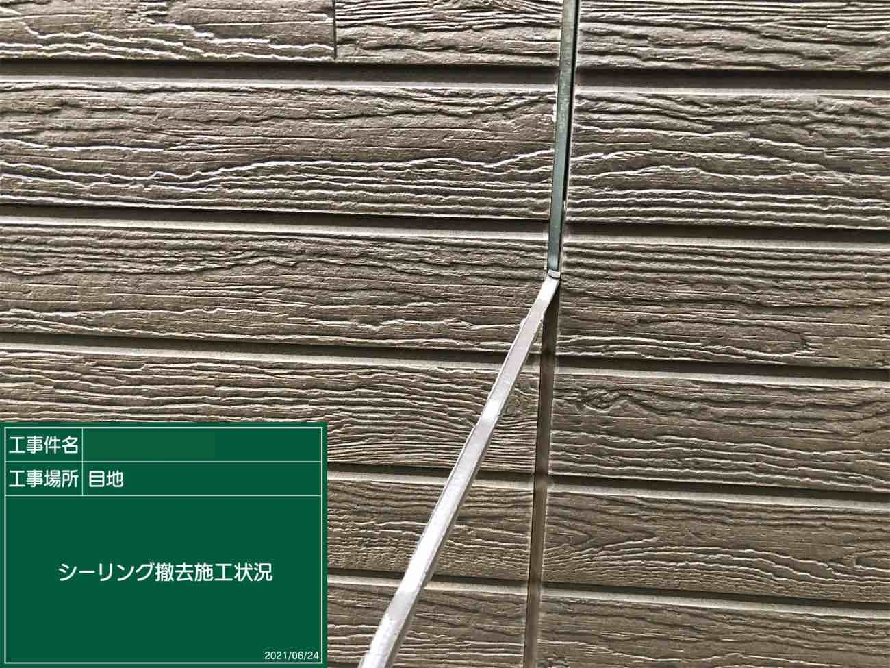 シーリング打替え作業はまず、既存のシーリングを撤去していきます。